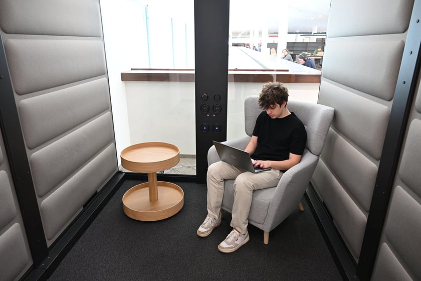 2 / 11 Wróć do artykułu Święty sPokój. Nowe miejsca w budynkach Politechniki Wrocławskiej Święty sPokój. Nowe miejsca w budynkach Politechniki Wrocławskiej fot. PWr Przejdź do poprzedniego zdjęcia. Poprzednie Następne Przejdź do kolejnego zdjęcia. Strefy ciszy na Politechnice Wrocławskiej
