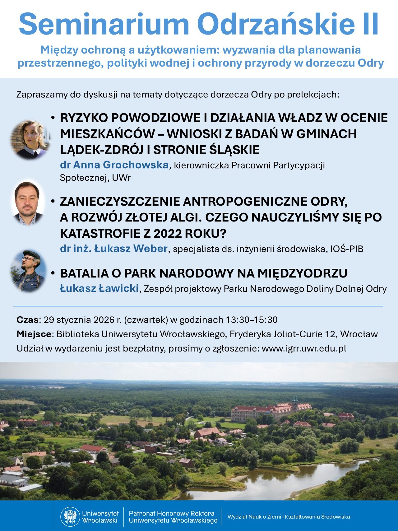 Ma ono być okazją do wymiany myśli na temat najważniejszych problemów dotyczących Odry i jej dopływów. Seminarium odbywa się pod patronatem JM Rektora Uniwersytetu Wrocławskiego.