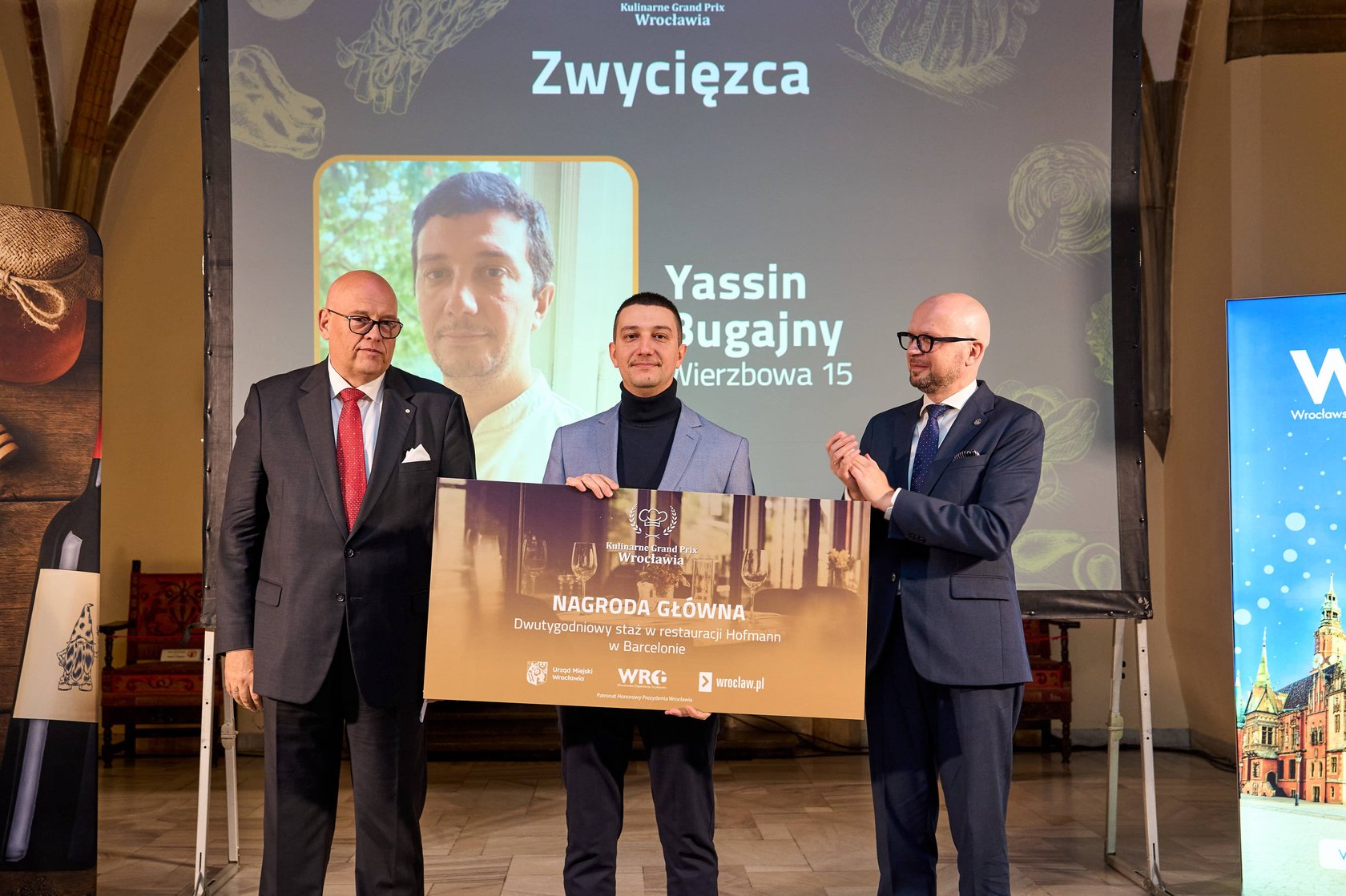 Kulinarne Grand Prix Wrocławia, gala w Sali Wielkiej Starego Ratusza, Wrocław, 22 października 2025. W środku Yassin Bugajny