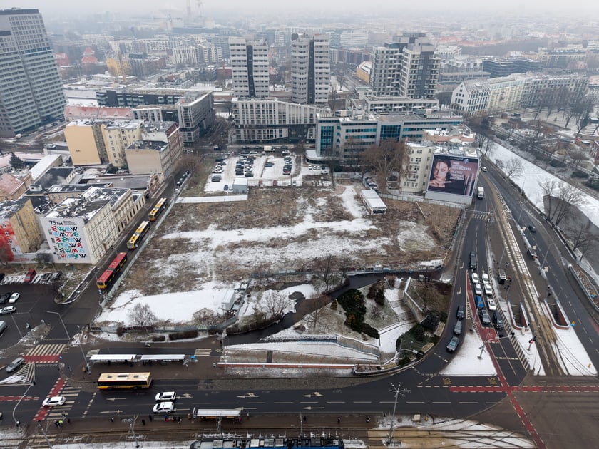 Skanska, właściciel działki na pl. Jana Pawła II z pozwoleniem na budowę, 4 luty 2026 r.