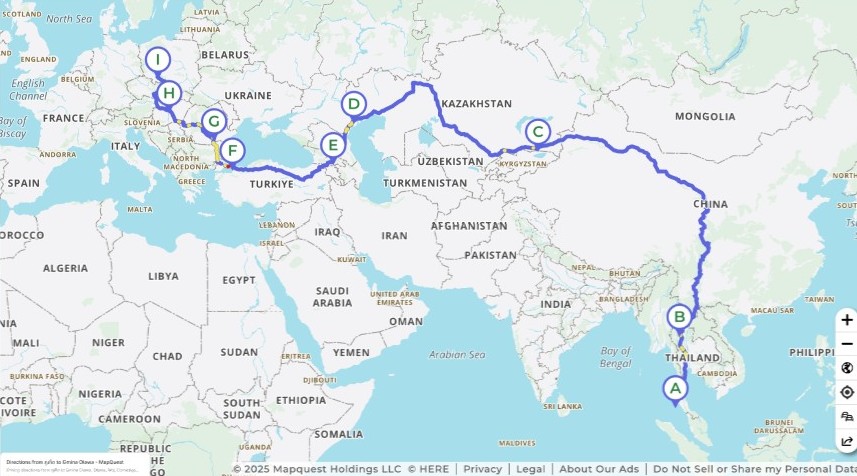 Trasa wyprawy "Z Ziemi Tajskiej do Polski"