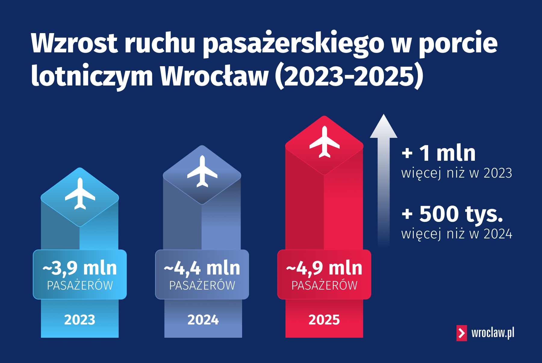 Port Lotniczy Wrocław obsługuje około 7,5% krajowego ruchu pasażerskiego. Jest też jednym z kluczowych czynników wzrostu gospodarczego Dolnego Śląska.