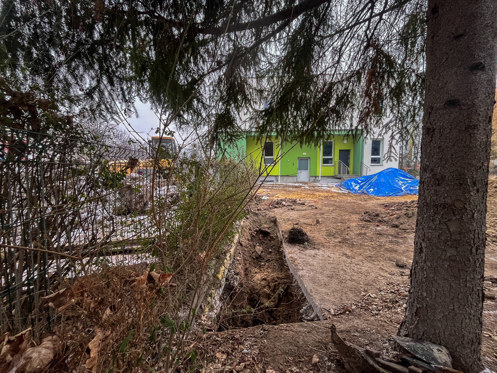 Wykop na terenie, z którego przeniesiono dzieci w bezpieczne miejsce