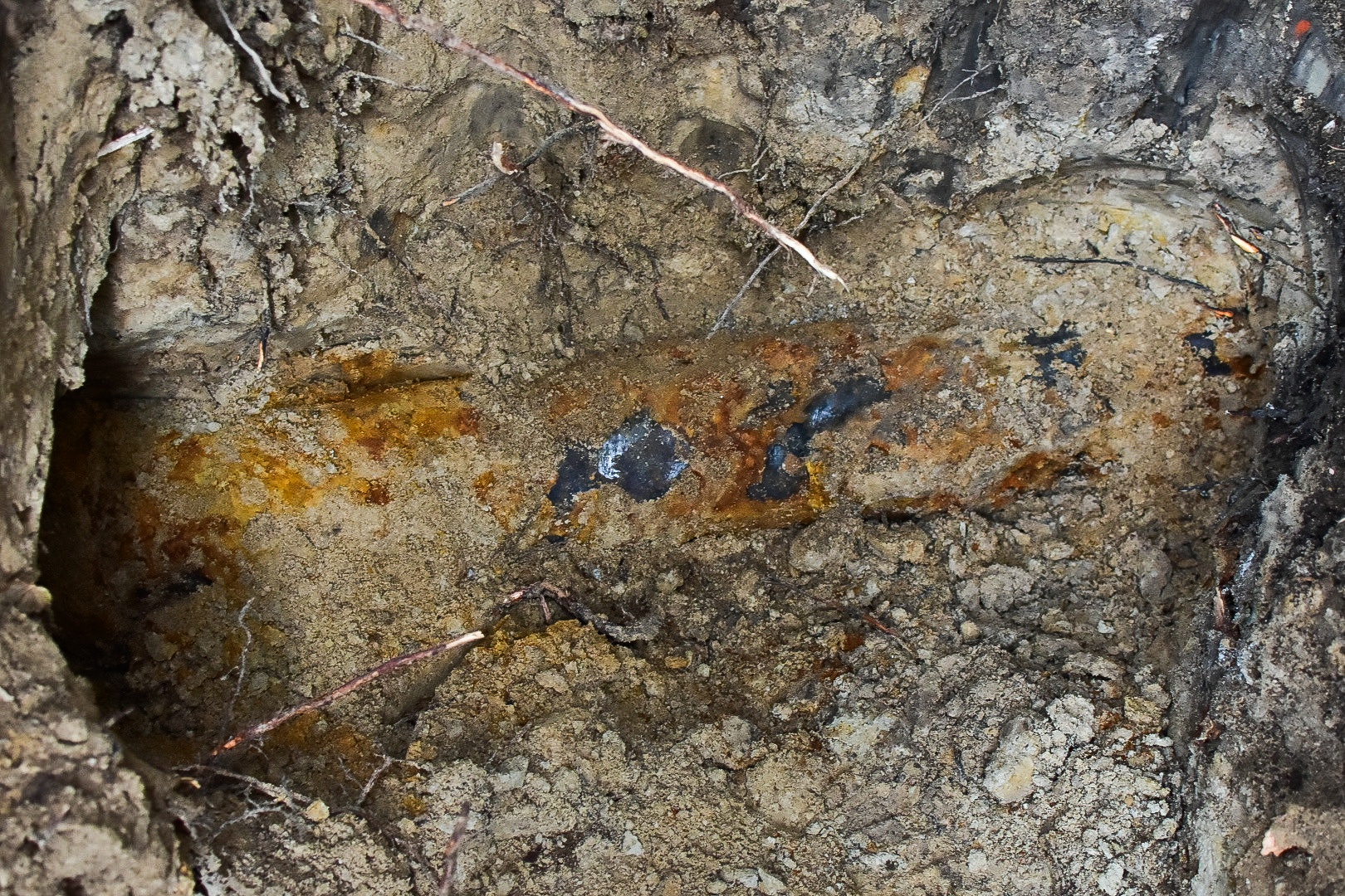 Obiekt, który wzięto za niewybuch (w kółku), w tle wykop