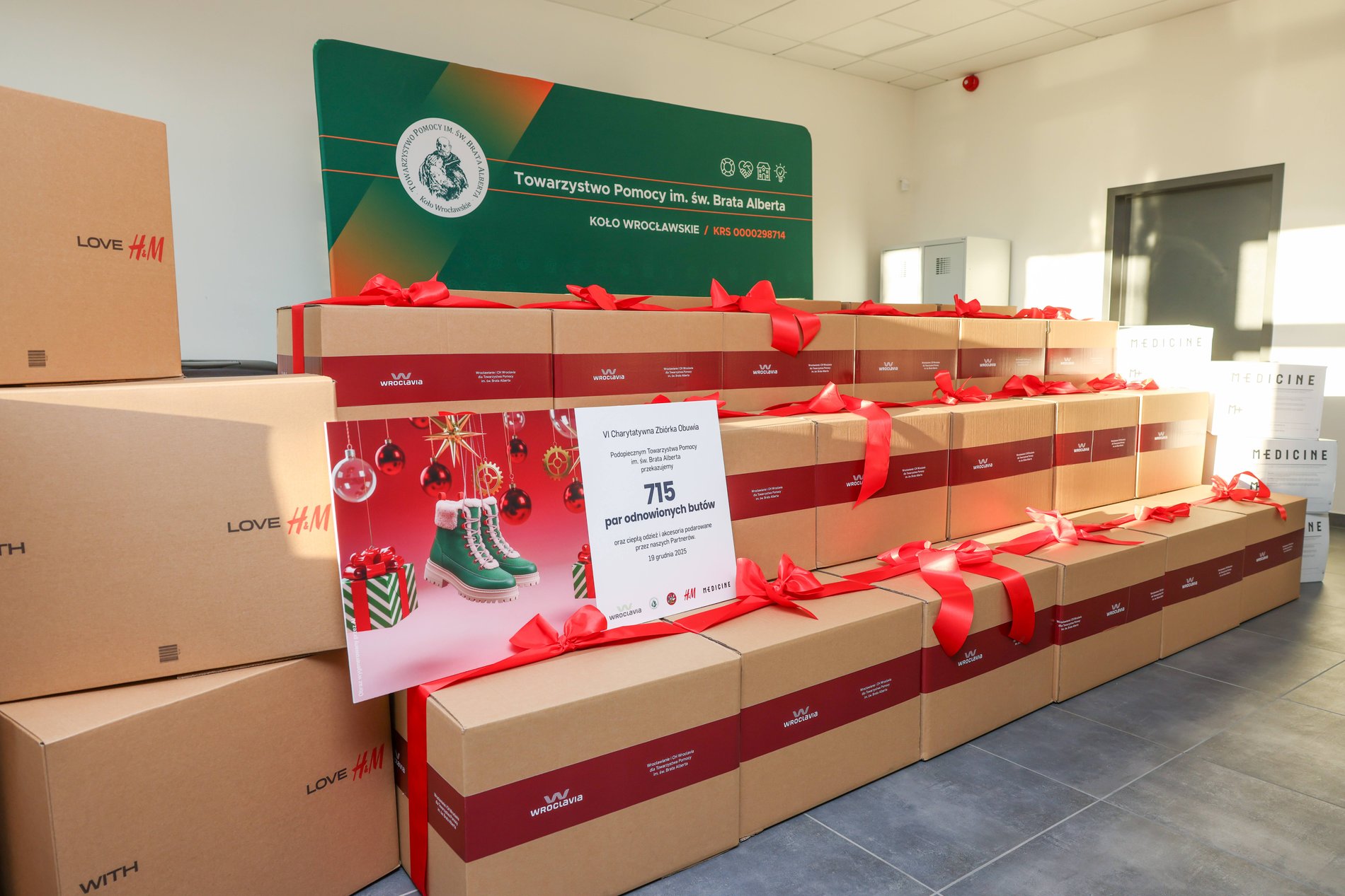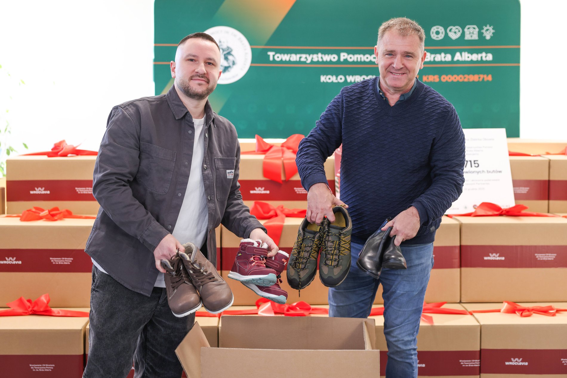 – Te 715 par butów oraz zimowa odzież z pewnością wesprą naszych podopiecznych w placówkach Koła Wrocławskiego Towarzystwa Pomocy im. św. Brata Alberta, w tym w czterech naszych schroniskach. Obiekt, w którym się znajdujemy, jest nowy i wyznacza lepsze standardy pomocy oraz wspierania osób w kryzysie bezdomności. Przekazane dary na pewno dobrze posłużą w naszych nowych placówkach, a osoby doświadczające kryzysu bezdomności będą mogły z nich realnie korzystać – podkreślił podczas konferencji prasowej Maciej Gudra z Koła Wrocławskiego Towarzystwa Pomocy im. św. Brata Alberta Koła Wrocławskiego, kierownik Noclegowni przy ul. Popielskiego.