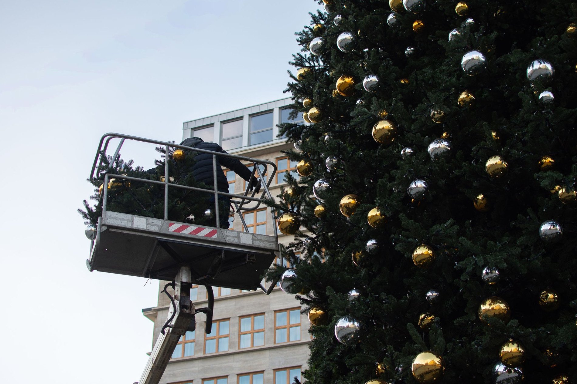 Rozbieranie i demontaż choinki na wrocławskim Rynku. Fot. Jakub Bieniek