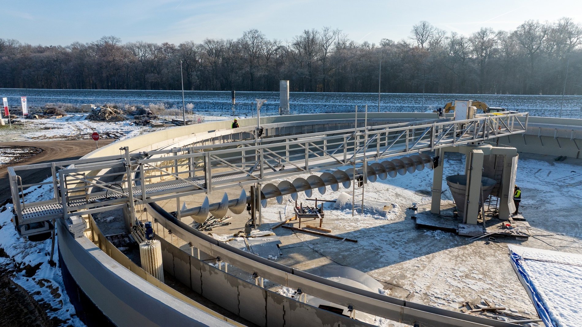 - Trwają prace przy dwóch nowych osadnikach wstępnych, które przeszły testy szczelności i rozpoczęto ich rozruch.