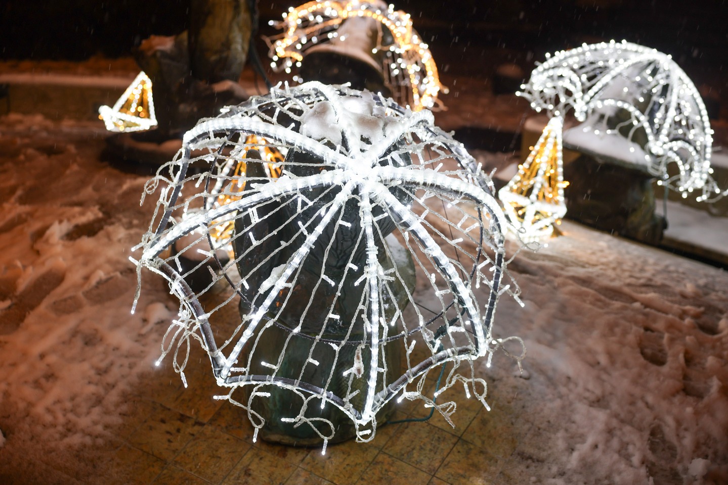 Podświetlone krasnale przed Teatrem Lalek