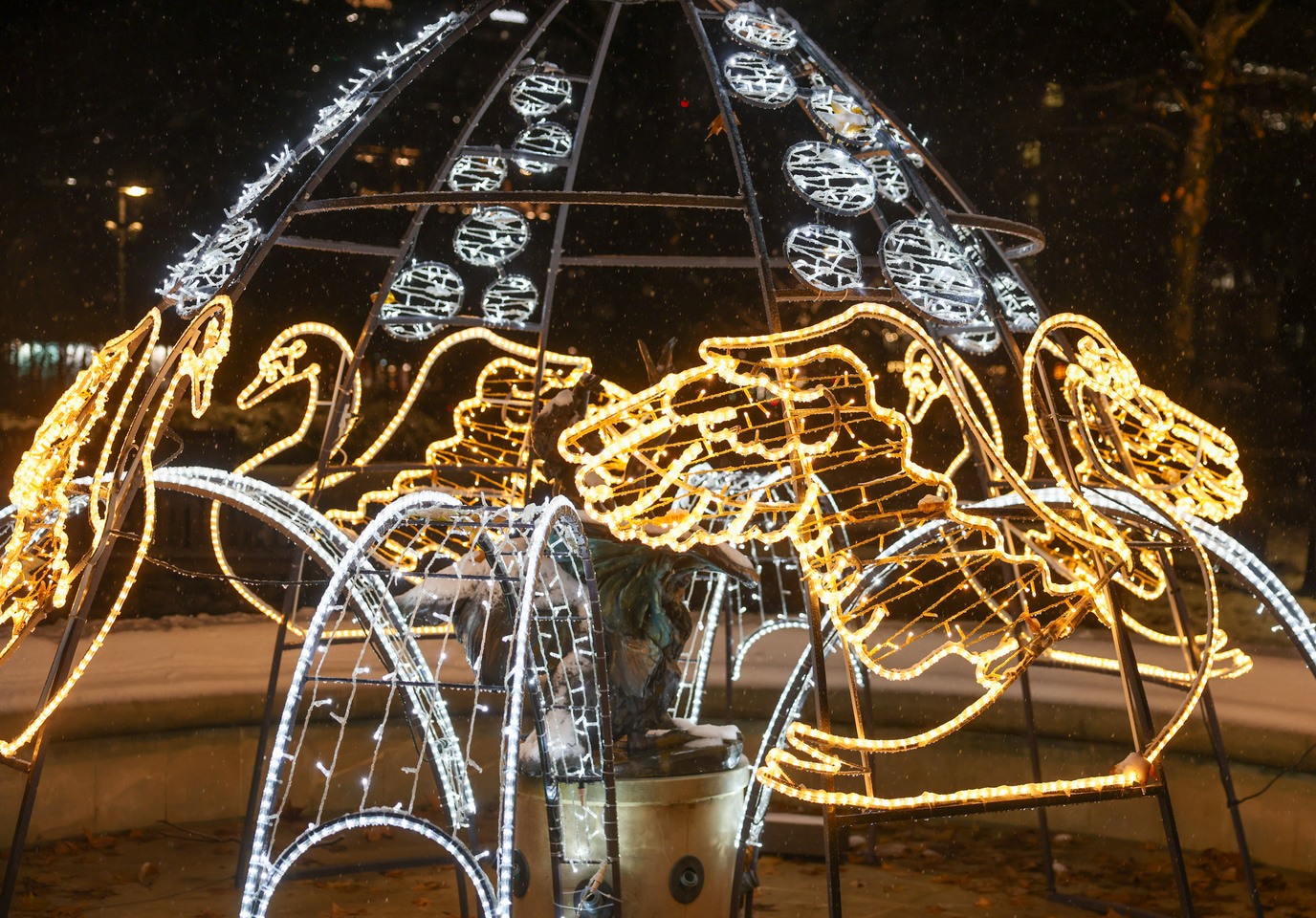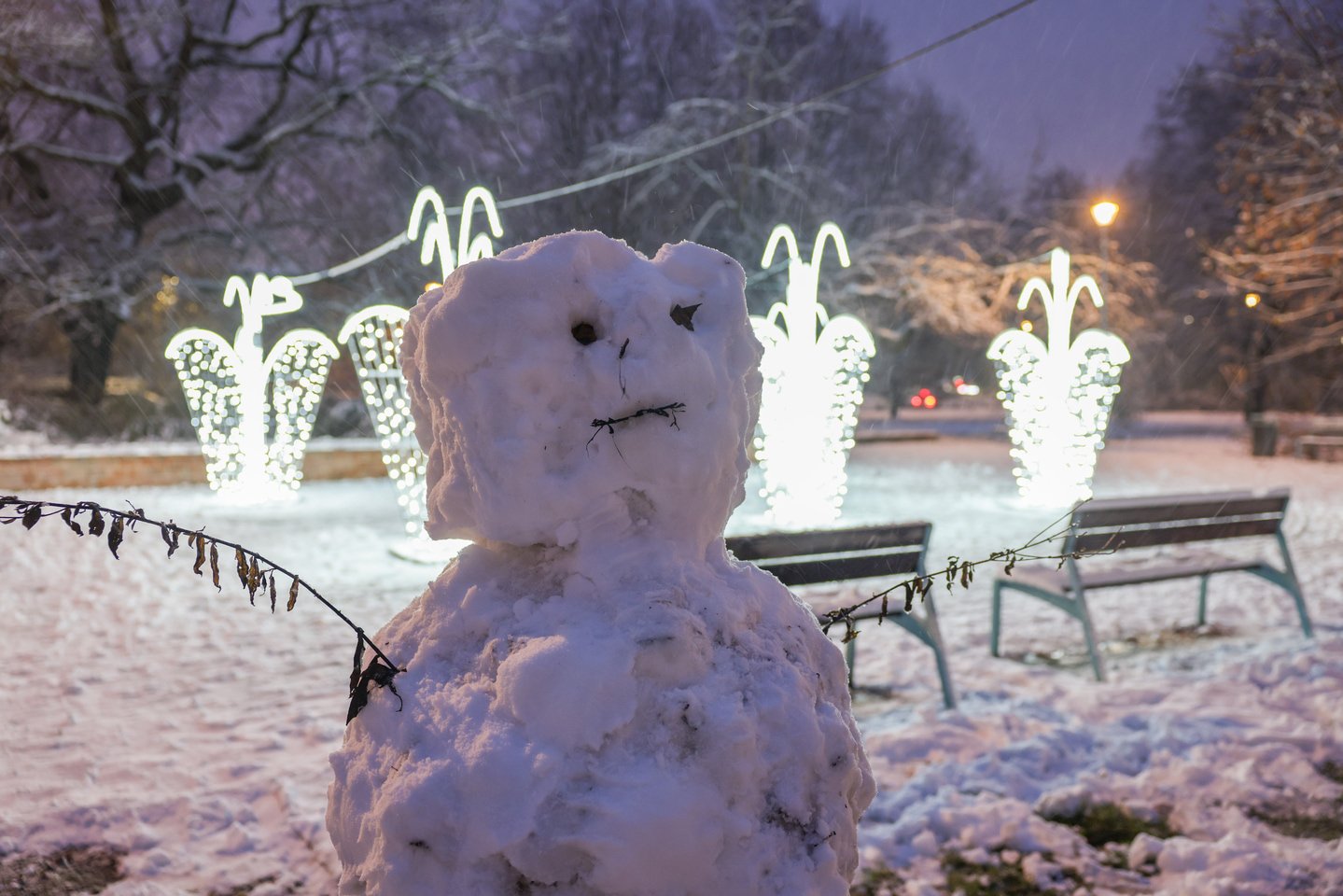 Rozświetlona fontanna w parku Staromiejskim