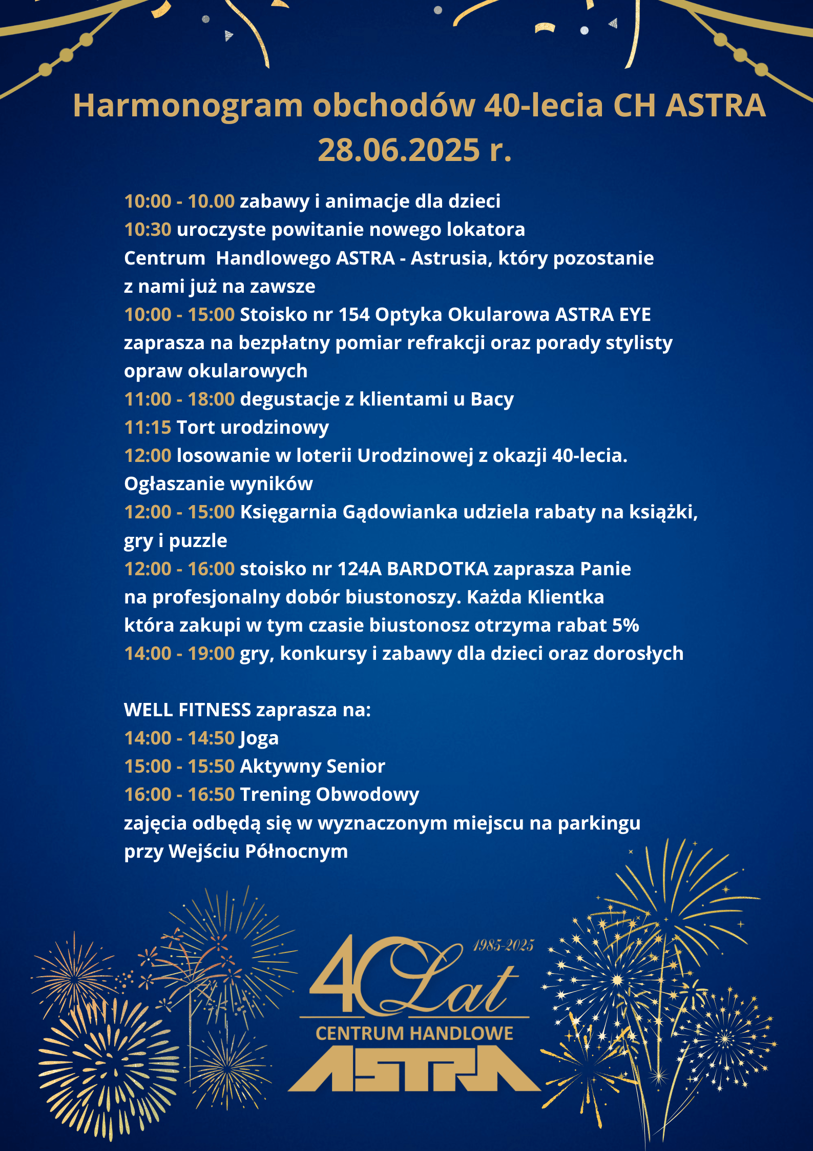 128 / 129 Wróć do artykułu Astra przy Horbaczewskiego świętuje 40-lecie Astra przy Horbaczewskiego świętuje 40-lecie Astra Przejdź do poprzedniego zdjęcia. Poprzednie Następne Przejdź do kolejnego zdjęcia. Program festynu z okazji 40-lecia Astry