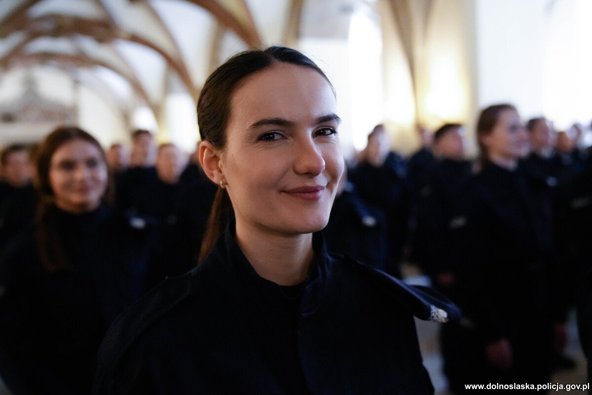 Ślubowanie nowoprzyjętych policjantów garnizonu dolnośląskiego w Sali Rycerskiej wrocławskiego Ratusza.