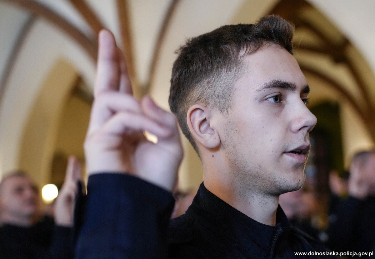 Ślubowanie nowoprzyjętych policjantów garnizonu dolnośląskiego w Sali Rycerskiej wrocławskiego Ratusza.