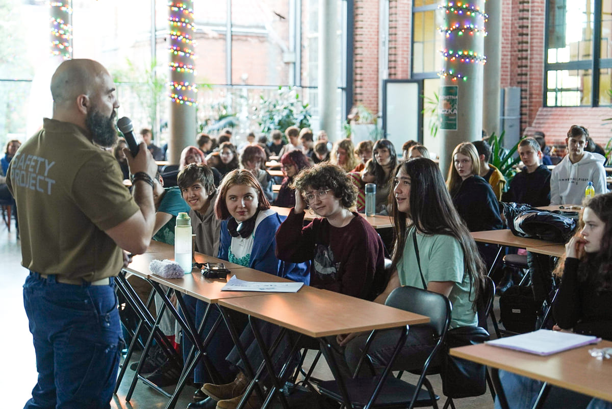 26 / 40 Wróć do artykułu Bezpieczny Wrocław w szkołach. Szkolenia w XVI i IX LO Bezpieczny Wrocław w szkołach. Szkolenia w XVI i IX LO Zuzanna Szarczyńska Przejdź do poprzedniego zdjęcia. Poprzednie Następne Przejdź do kolejnego zdjęcia. Bezpieczny Wrocław w szkołach - szkolenie w IX LO przy ul. Piotra Skargi