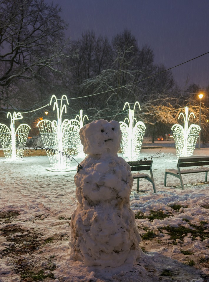 Rozświetlona fontanna w Parku Węgrzynowskiego