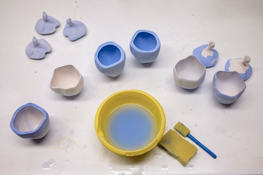 Powstają tu piękne, unikalne naczynia i przedmioty. „Naczynia przed wypaleniem poddawane są szkliwieniu. Niektóre z nich są zanurzane w szkliwie w całości, natomiast część oblewana jest wyłącznie od środka” – pisze Michał Medyński.