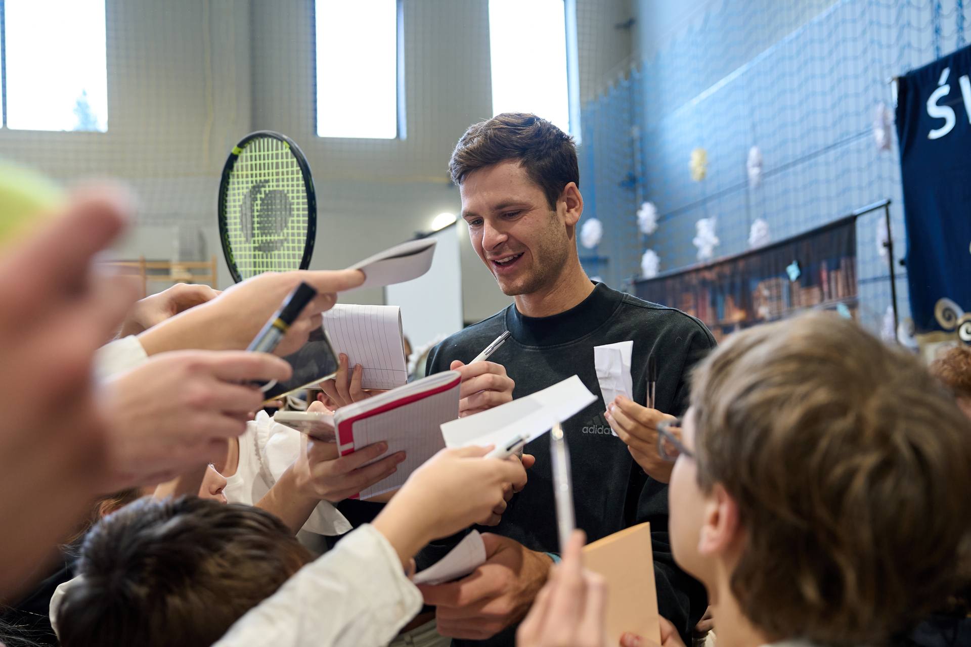 20 / 25 Wróć do artykułu Hubert Hurkacz odwiedził dawną szkołę we Wrocławiu Hubert Hurkacz odwiedził dawną szkołę we Wrocławiu Oleksandr Poliakovsky/Wroclaw.pl Przejdź do poprzedniego zdjęcia. Poprzednie Następne Przejdź do kolejnego zdjęcia. Hubert Hurkacz odwiedził dawną szkołę na Januszowickiej we Wrocławiu i spotkał się z uczaniami