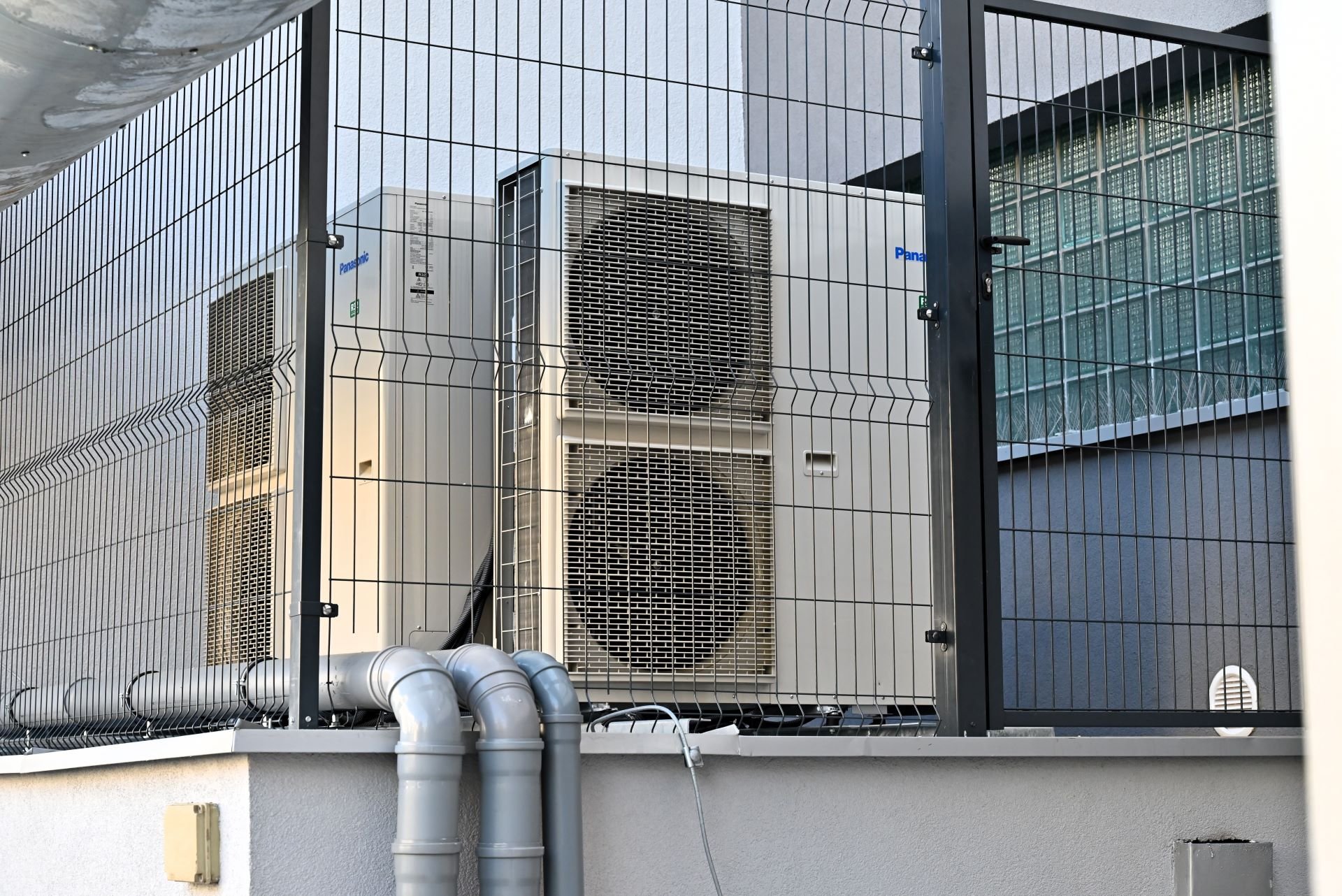 Pompy ciepła zasilane prądem z paneli fotowoltaicznych ogrzewają wodę dla mieszkańców.