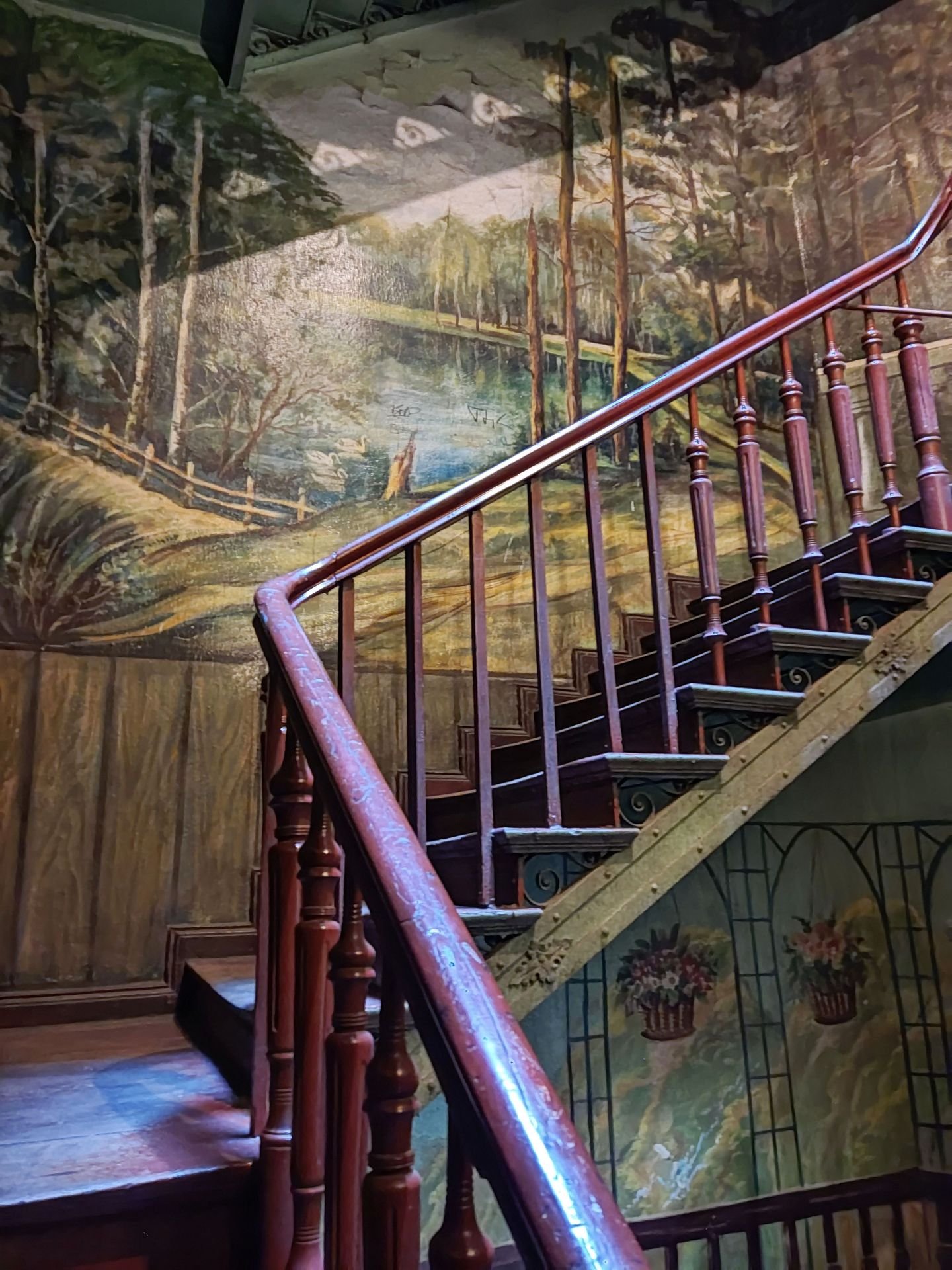 Wnętrze kamienicy przy Glinianej z malowidłami na ścianach