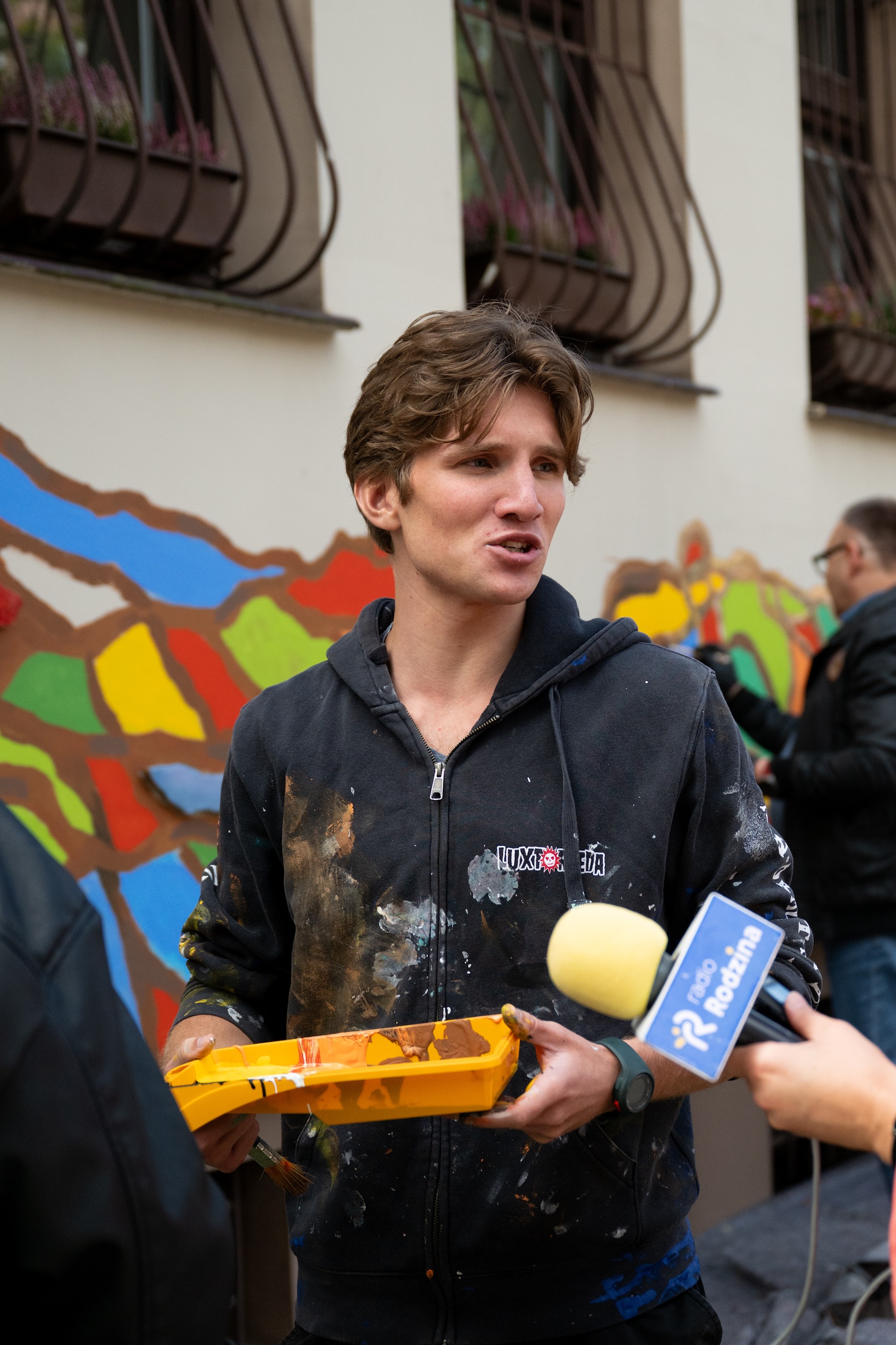 9 / 26 Wróć do artykułu W miejsce mowy nienawiści, powstał mural solidarności W miejsce mowy nienawiści, powstał mural solidarności Grzegorz Rajter Przejdź do poprzedniego zdjęcia. Poprzednie Następne Przejdź do kolejnego zdjęcia. Uczestnicy spotkania, podczas którego malowano mural solidarności