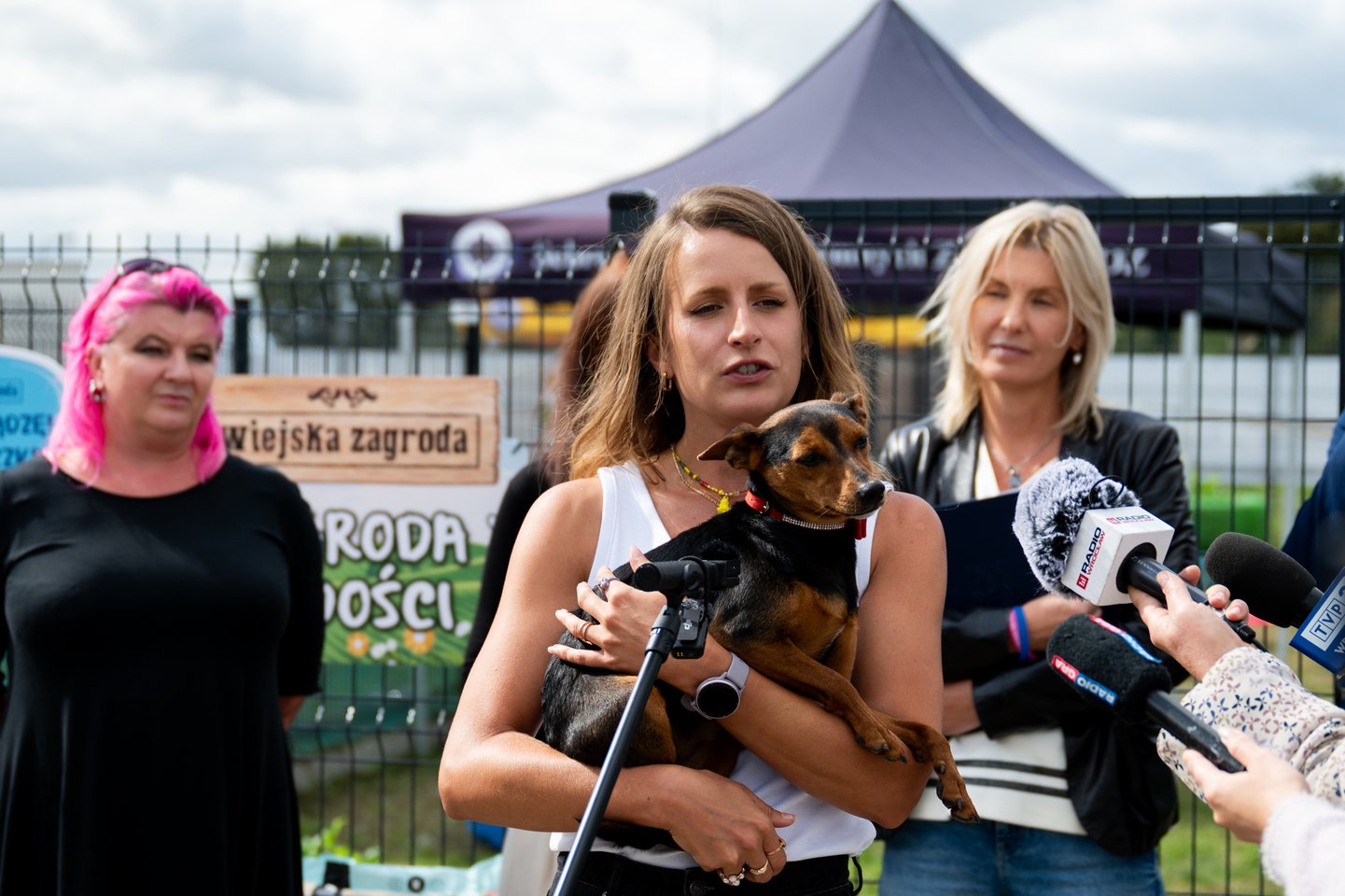 TOZ Schronisko dla Bezdomnych Zwierząt – otwarcie trzech nowych wybiegów – na zdjęciu Aleksandra Cukier, dyrektorka TOZ i podopieczny schroniska