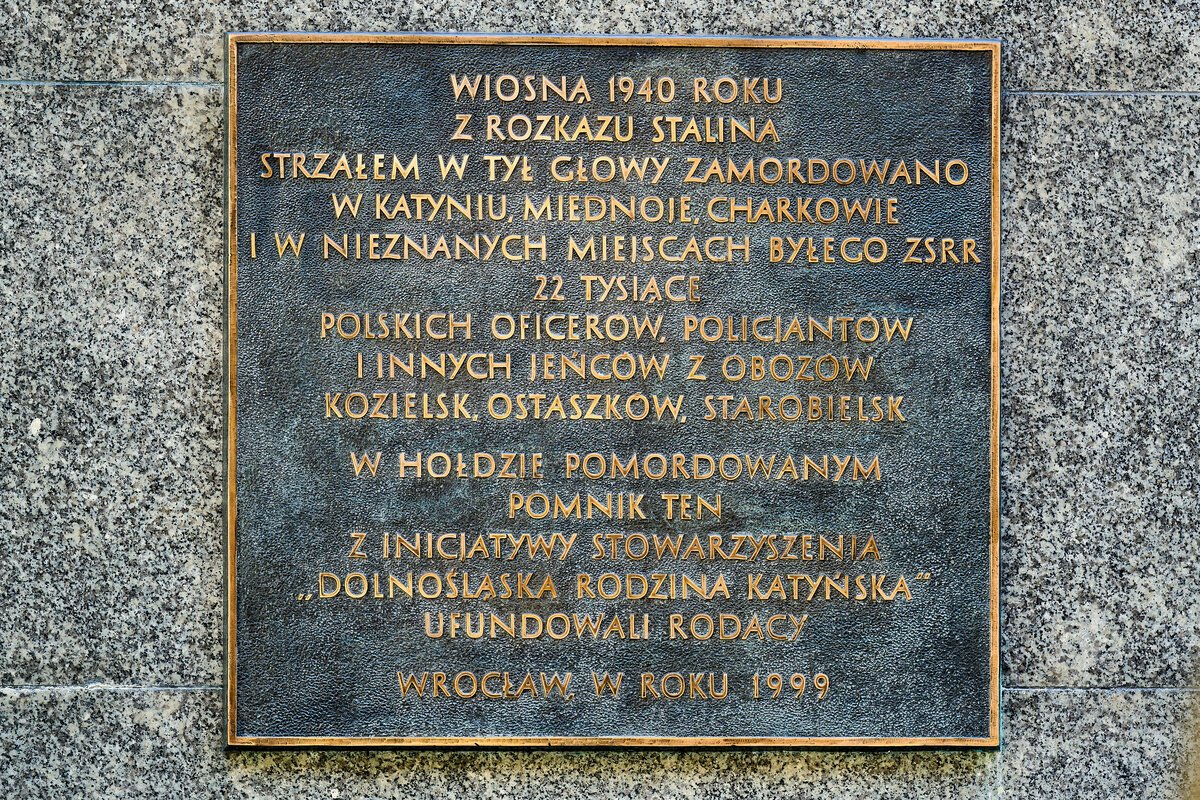 6 / 13 Wróć do artykułu Pomnik Ofiar Katynia dla 22 tysięcy bohaterów Pomnik Ofiar Katynia dla 22 tysięcy bohaterów Oleksandr Poliakovsky Przejdź do poprzedniego zdjęcia. Poprzednie Następne Przejdź do kolejnego zdjęcia. Pomnik Ofiar Zbrodni Katyńskiej w parku Juliusza Słowackiego we Wrocławiu