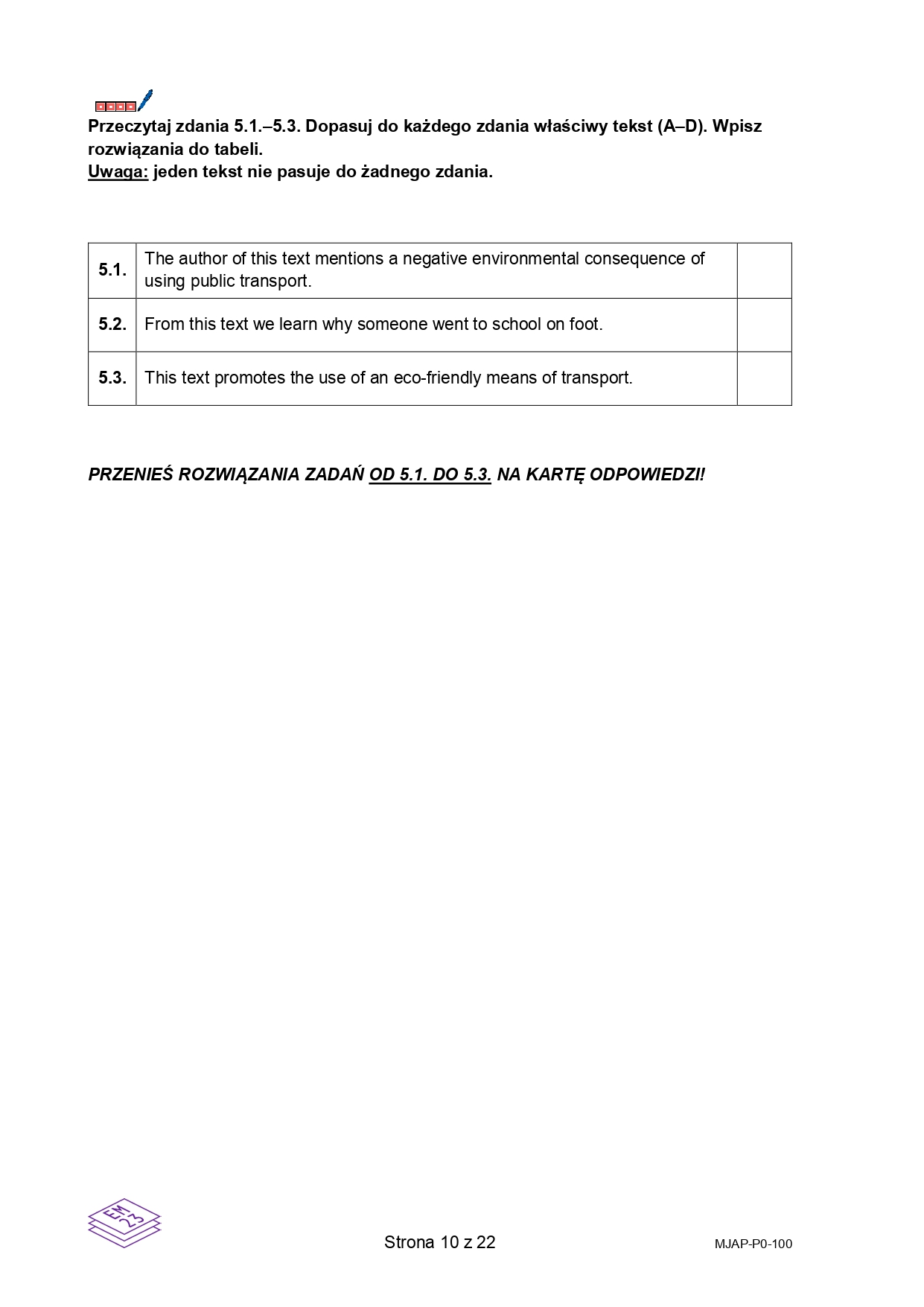 10 / 23 Wróć do artykułu Próbna matura 2026 z języka angielskiego. Arkusz CKE Próbna matura 2026 z języka angielskiego. Arkusz CKE materiały CKE Przejdź do poprzedniego zdjęcia. Poprzednie Następne Przejdź do kolejnego zdjęcia. Arkusz próbnej matury z języka angielskiego 2026