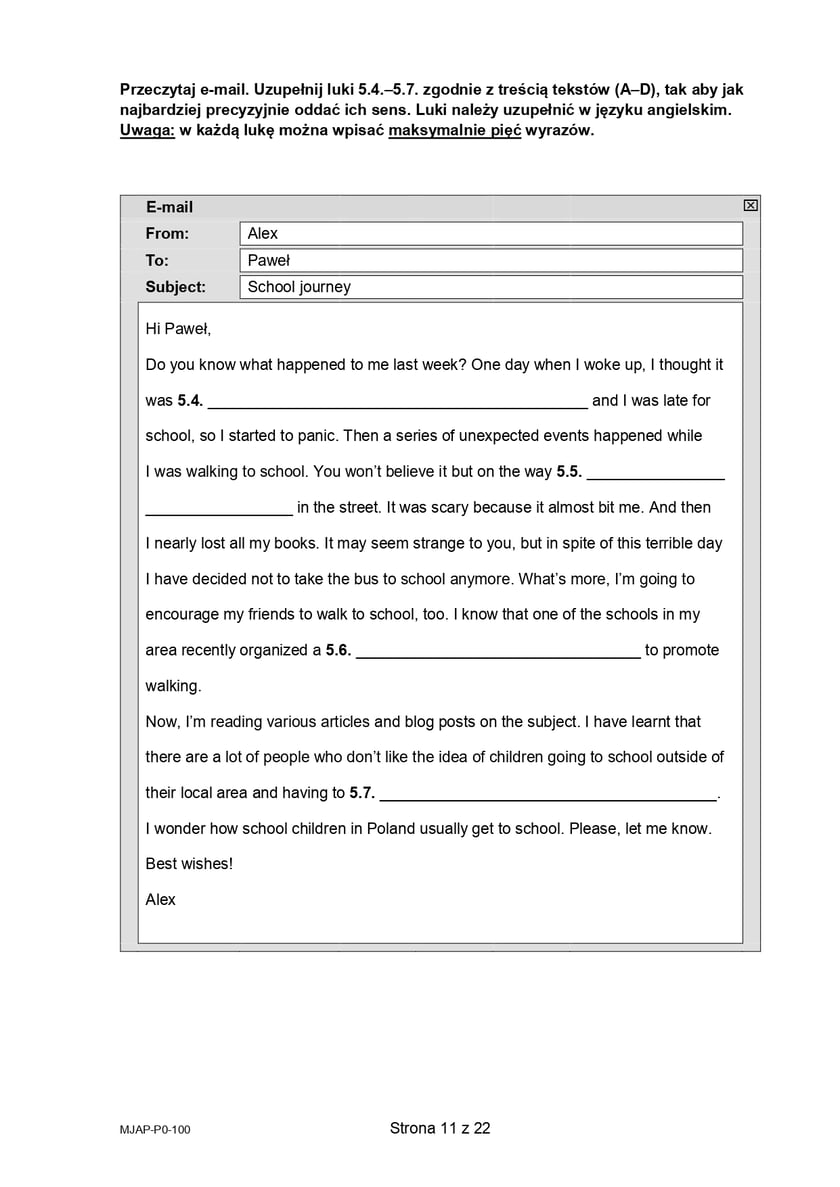 11 / 23 Wróć do artykułu Próbna matura 2026 z języka angielskiego. Arkusz CKE Próbna matura 2026 z języka angielskiego. Arkusz CKE materiały CKE Przejdź do poprzedniego zdjęcia. Poprzednie Następne Przejdź do kolejnego zdjęcia. Arkusz próbnej matury z języka angielskiego 2026