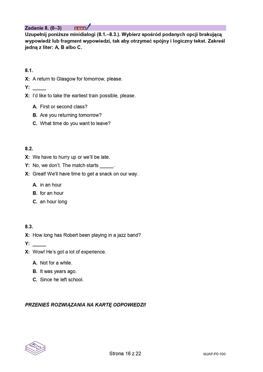 16 / 23 Wróć do artykułu Próbna matura 2026 z języka angielskiego. Arkusz CKE Próbna matura 2026 z języka angielskiego. Arkusz CKE materiały CKE Przejdź do poprzedniego zdjęcia. Poprzednie Następne Przejdź do kolejnego zdjęcia. Arkusz próbnej matury z języka angielskiego 2026