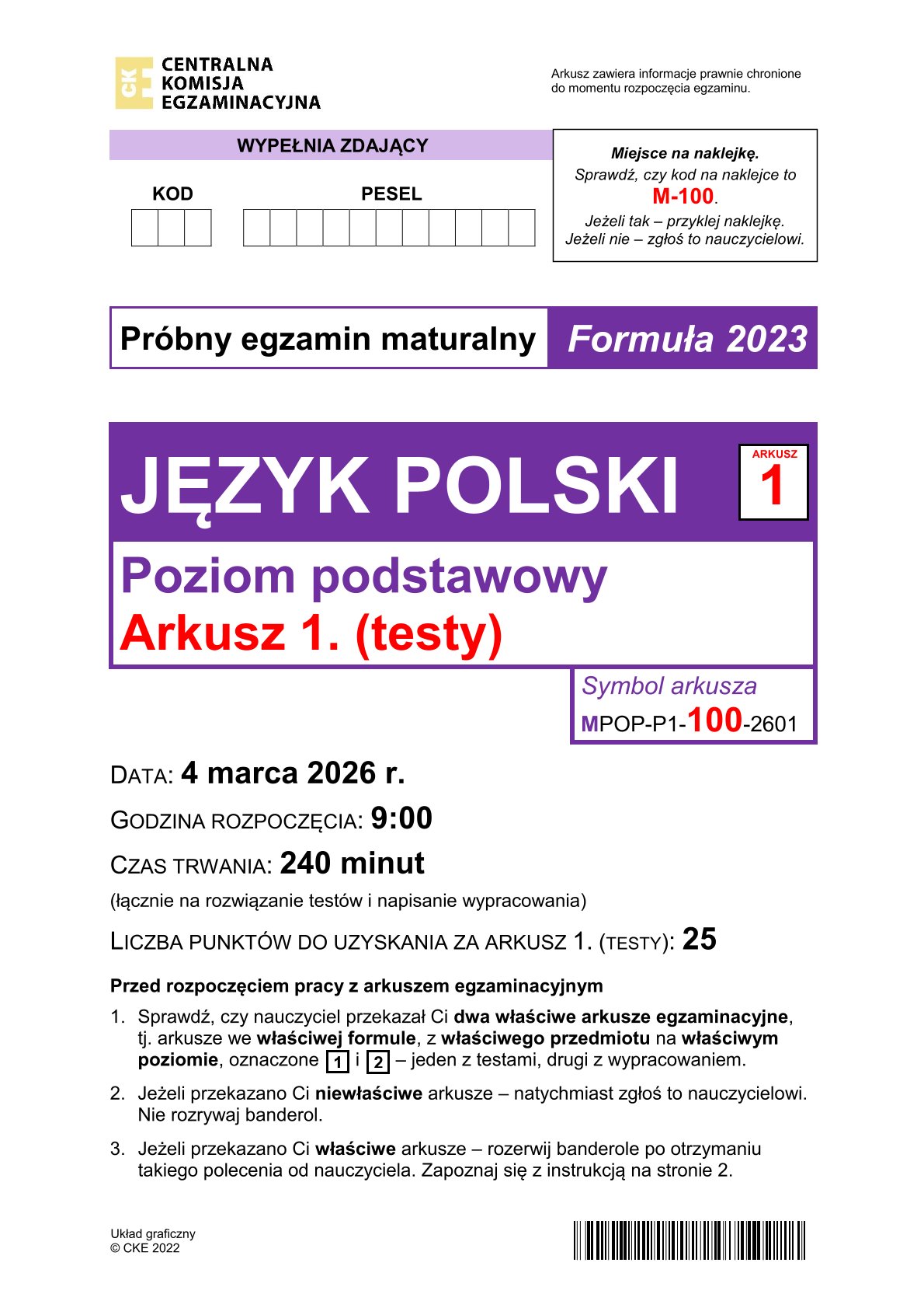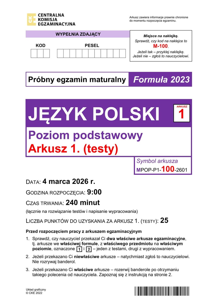 Arkusz: matura próbna 2026 z języka polskiego, poziom podstawowy - 4 marca 2026 r.