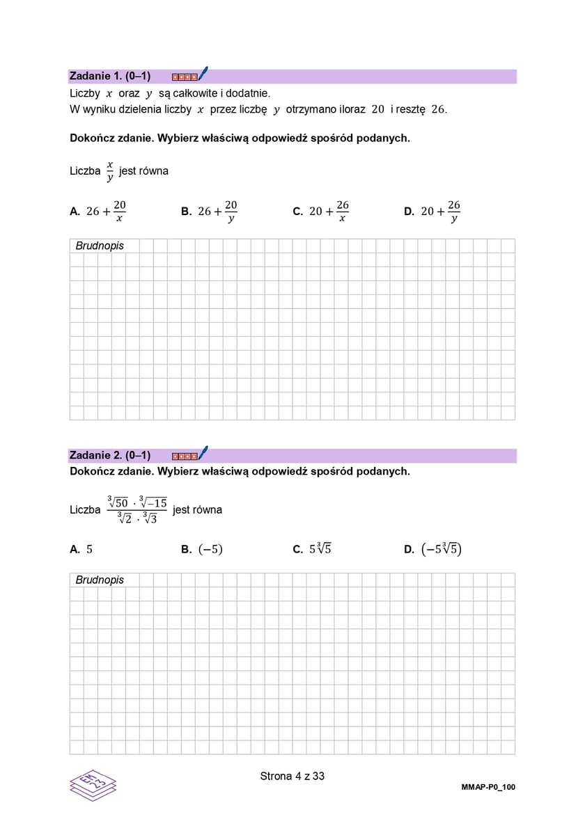 4 / 33 Wróć do artykułu Próbna matura 2026 z matematyki - arkusz CKE Próbna matura 2026 z matematyki - arkusz CKE materiały CKE Przejdź do poprzedniego zdjęcia. Poprzednie Następne Przejdź do kolejnego zdjęcia. Arkusz próbnej matury z matematyki 2026