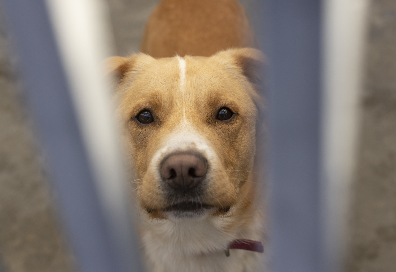 Na zdjęciu Floyd, 1,5 roku. Bardzo miły, zwariowany i energiczny pies. Do schroniska trafił jako znaleziony. Jest silny, potrzebuje aktywnego domu
