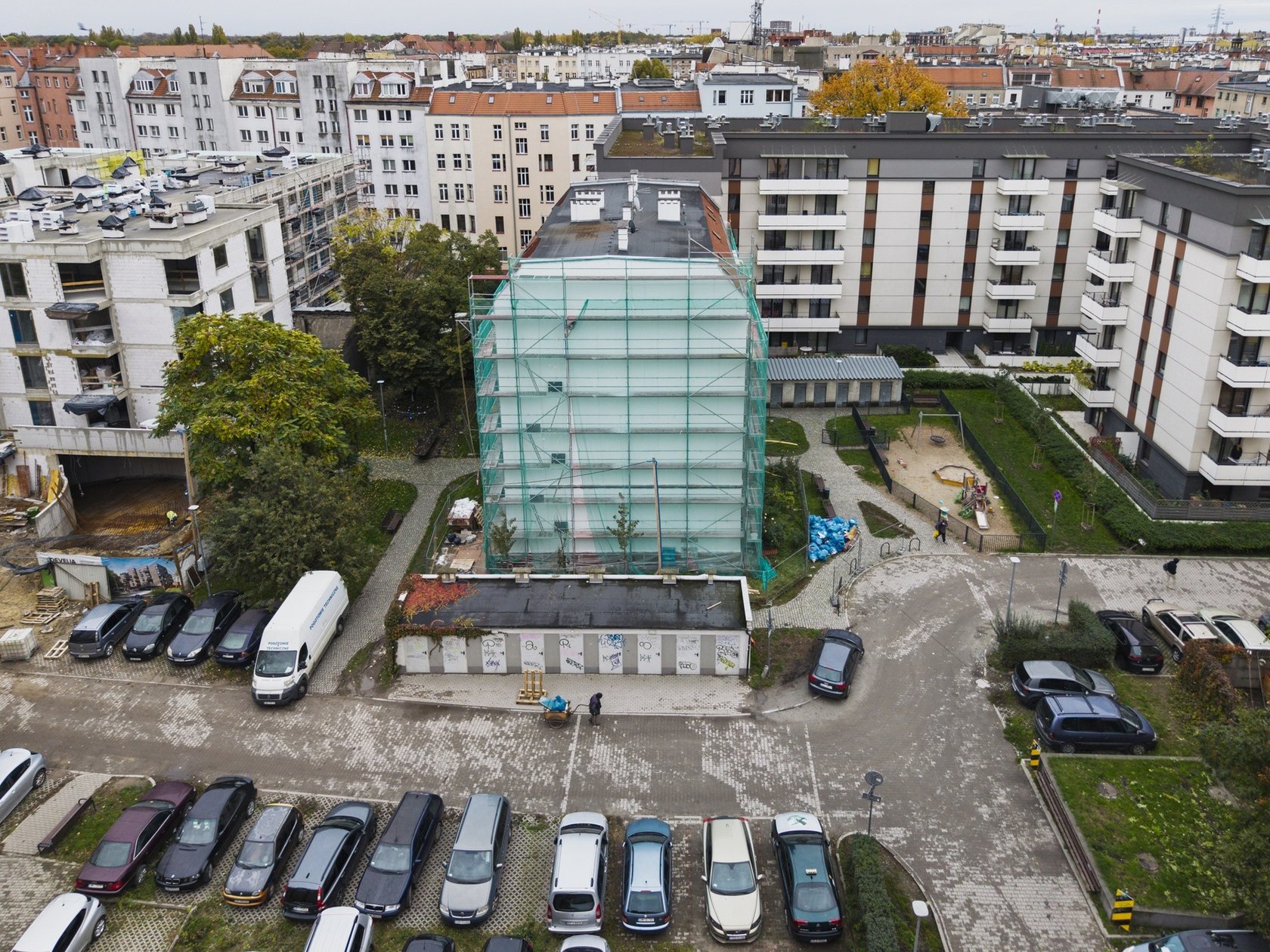 Prądzyńskiego 20a w trackie remontu elewacji, 24 października 2025