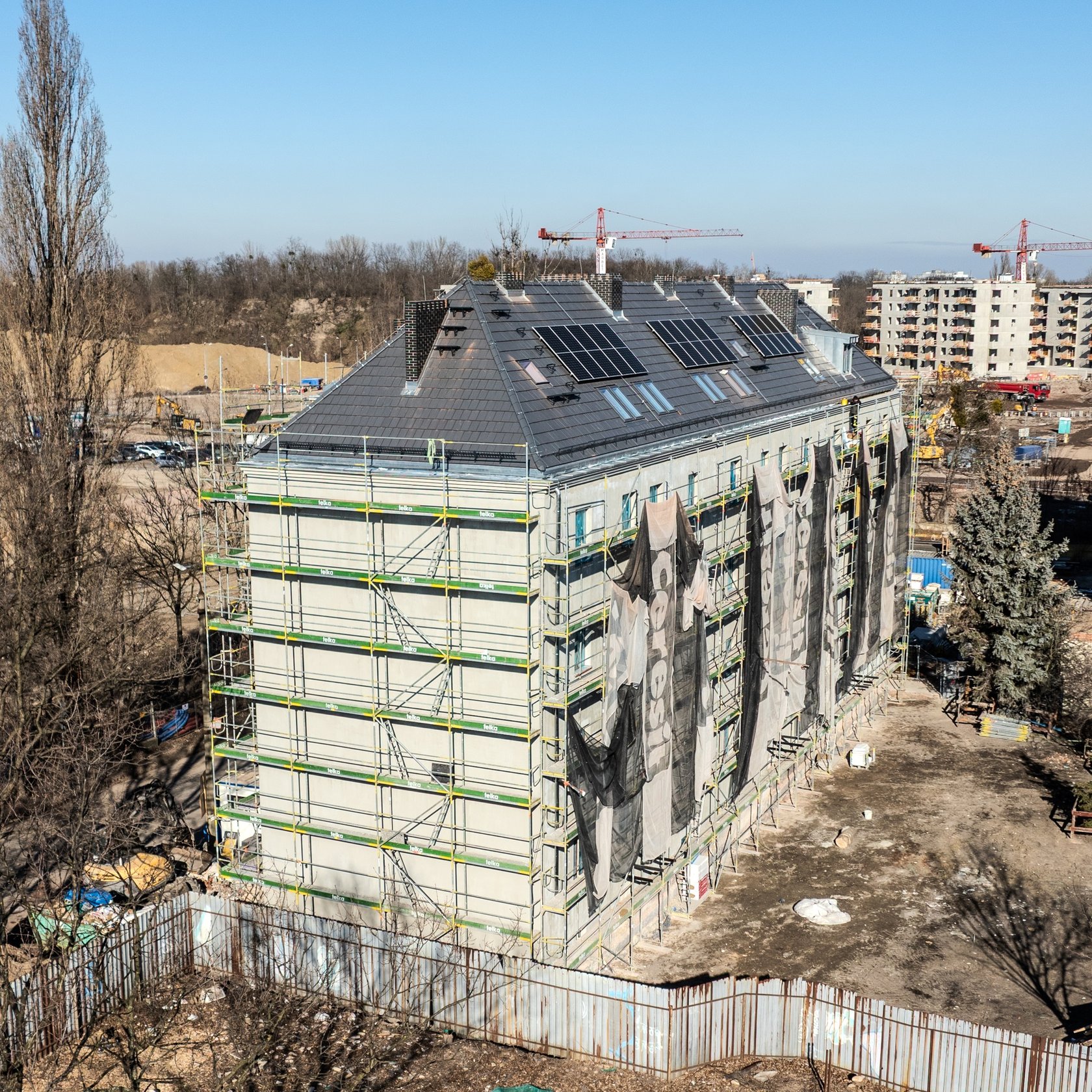 Remont budynku na Wilczej 1-3-5. Na dachu zamontowano panele fotowoltaiczne - to pierwsza tego typu inwestycja gminna