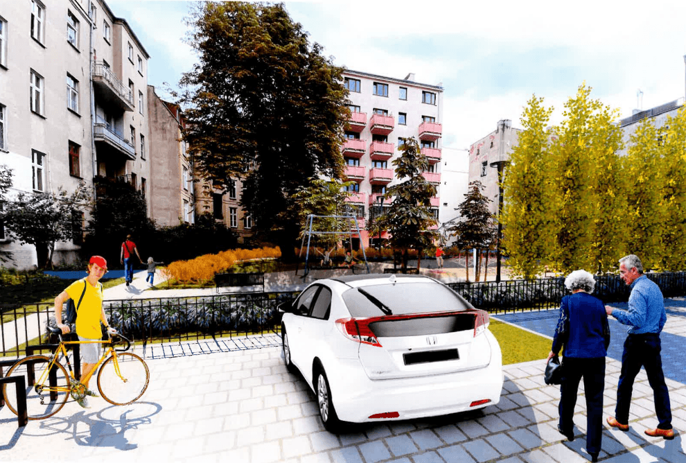 Wizualizacja - podwórko w obrębie ulic Piotra Skargi i Nowej