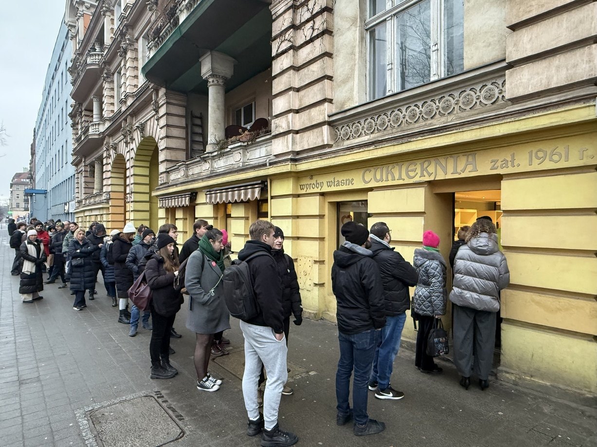 12 / 22 Wróć do artykułu Tłusty Czwartek we Wrocławiu. Długie kolejki pod cukierniami Tłusty Czwartek we Wrocławiu. Długie kolejki pod cukierniami fot. Krzysztof Saj Przejdź do poprzedniego zdjęcia. Poprzednie Następne Przejdź do kolejnego zdjęcia. Cukiernia „Pod Trumienką” przy ul. Marii Skłodowskiej-Curie we Wrocławiu