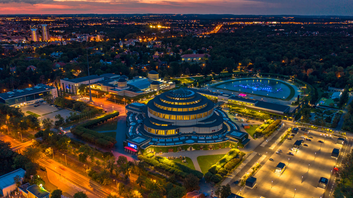 7 / 8 Wróć do artykułu Wrocław popularnym kierunkiem na lato. Setki tysięcy odwiedzających w te wakacje Wrocław popularnym kierunkiem na lato. Setki tysięcy odwiedzających w te wakacje materiały prasowe Przejdź do poprzedniego zdjęcia. Poprzednie Następne Przejdź do kolejnego zdjęcia. Hala Stulecia po zmroku - widok z drona