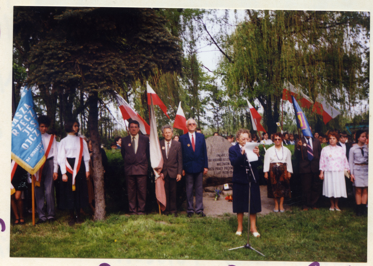 Uroczyste obchody 50. Rocznicy kapitulacji Festung Breslau przy pomniku ofiar obozu Burgweide przy alei Poprzecznej, 6 maja 1995 roku.