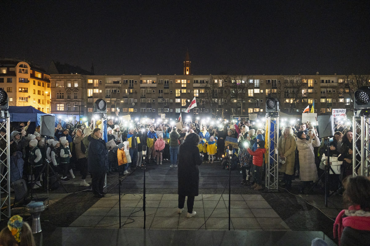 28 / 33 Wróć do artykułu Żółto-niebieski plac Nowy Targ. Wiec w trzecią rocznicę rosyjskiej napaści Żółto-niebieski plac Nowy Targ. Wiec w trzecią rocznicę rosyjskiej napaści Marek Księżarek Przejdź do poprzedniego zdjęcia. Poprzednie Następne Przejdź do kolejnego zdjęcia. Wiec w trzecią rocznicę rosyjskiej napaści na Ukrainę. Plac Nowy Targ, 24 luty 2025