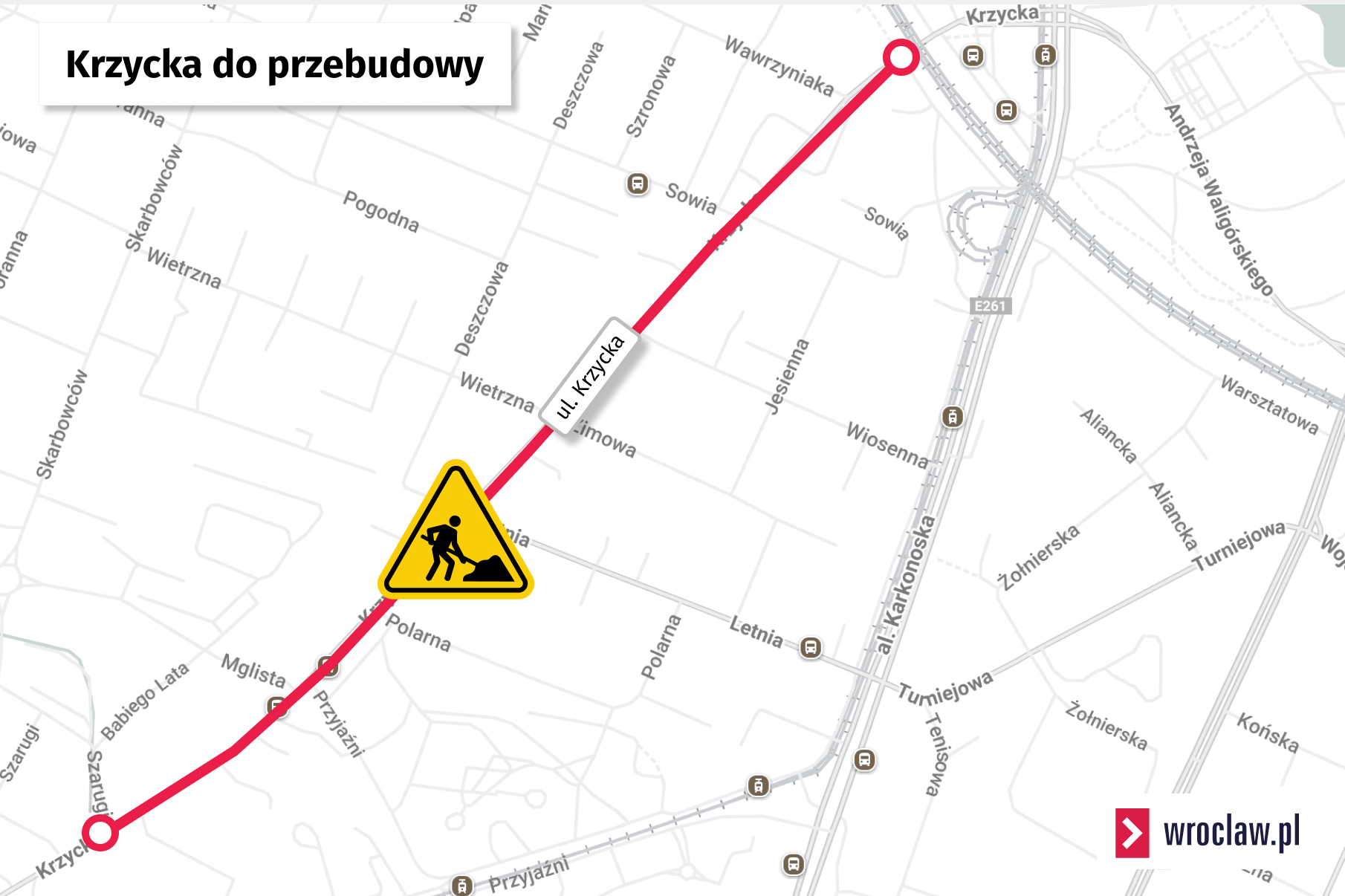 W pierwszych dniach listopada Wrocławskie Inwestycje ogłosiły przetarg na opracowanie dokumentacji projektowej przebudowy ulicy Krzyckiej na odcinku (około 1 kilometr) od ul. Szarugi do wiaduktu kolejowego.