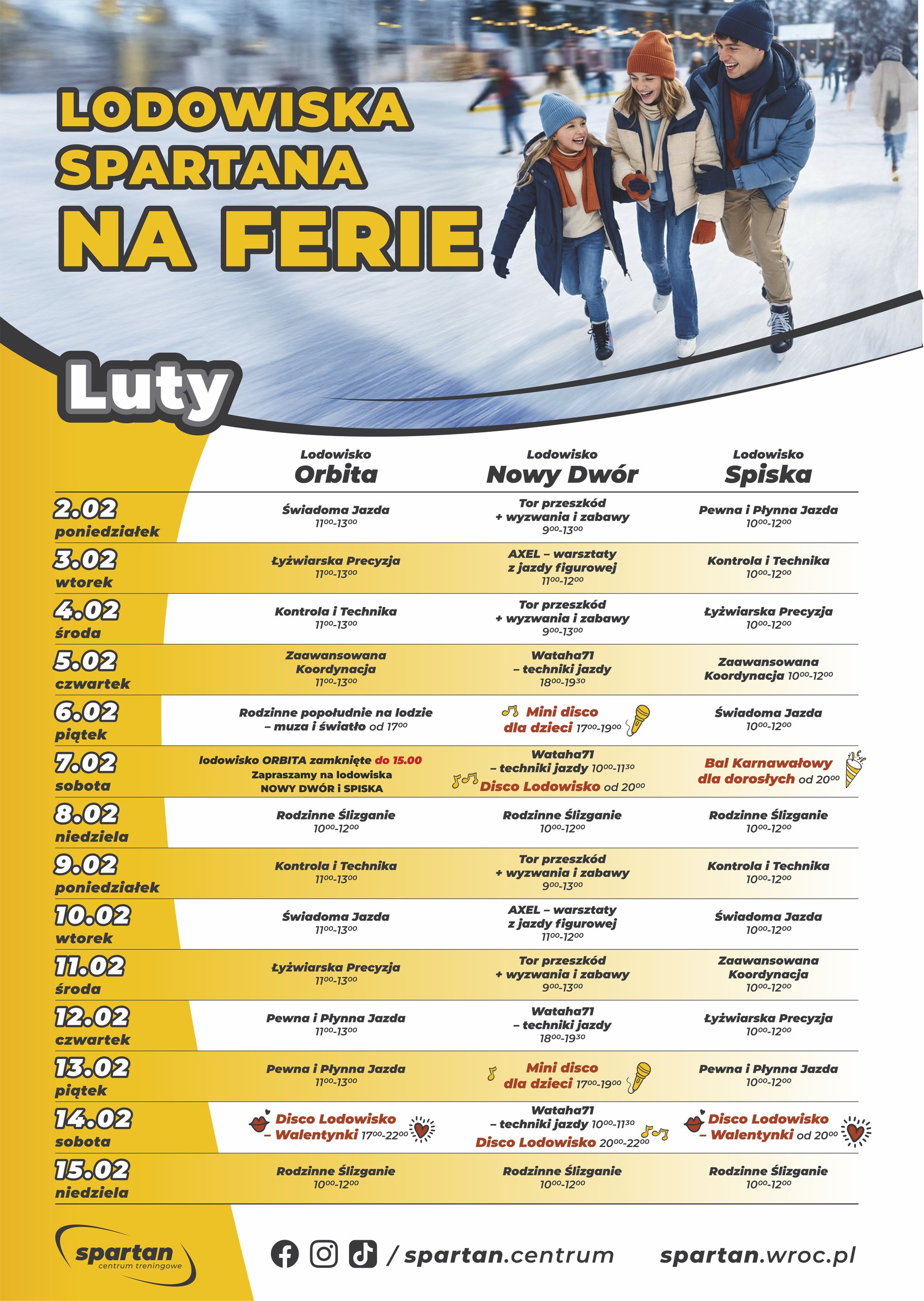 Kalendarz wydarzeń na lodowiskach Spartana - przez całe ferie od 2 do 15 lutego