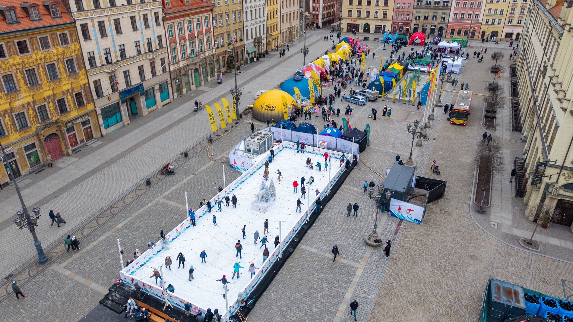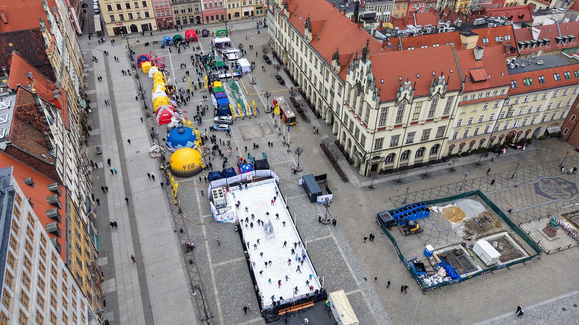 Konfetti czerwonych serduszek, lodowisko z widokiem na zabytkowe kamienice i Ratusz, mini skocznia narciarska, stoiska, warsztaty, animacje oraz konkursy z nagrodami – tak wyglądał finał zimowego sezonu w centrum Wrocławia. Rynek, który na co dzień tętni miejskim rytmem, podczas ferii zamienił się w lodową scenę i przestrzeń wspólnej zabawy dla całych rodzin.