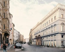 - manifestacja funkcji hotelowej na elewacji poprzez wprowadzenie nowoczesnych okien bez ram ze zredukowanymi podziałami wewnętrznymi;