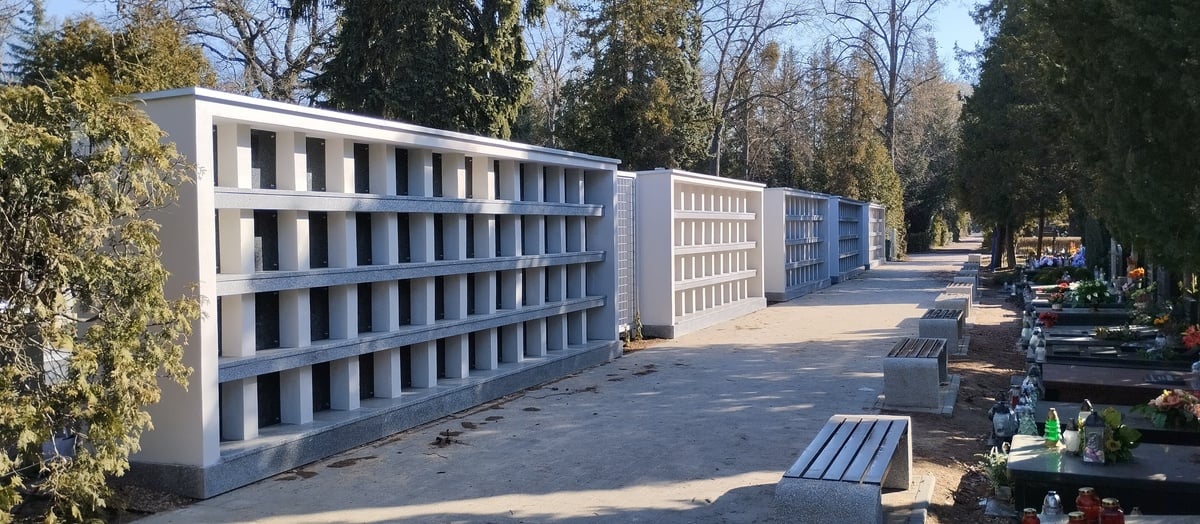 – Nisze zostały wkomponowane w konstrukcję kolumbariów zarówno w układzie pionowym, jak i poziomym. To odpowiedź na pytania rodzin osób zmarłych o taką formę pochówku i możliwość wspólnego upamiętnienia kilku pokoleń w jednym miejscu — mówi Anna Ciesłowska. – Łącznie nowy zespół modułów zapewni 324 nisze, w tym 36 rodzinnych. Ich ceny wynoszą od 6 do 15 tysięcy złotych w zależności od wielkości.