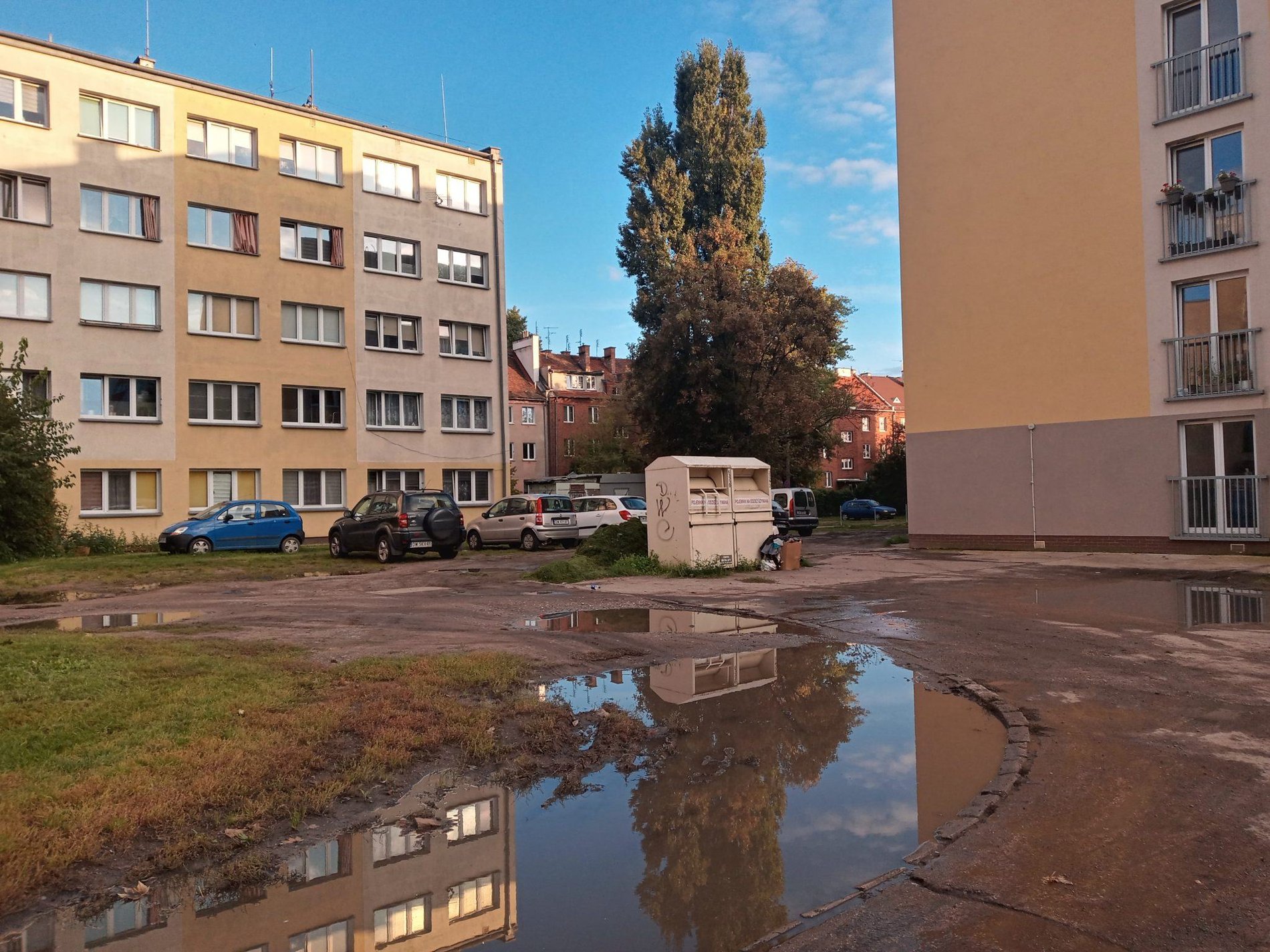 Podwórze, jak każde, które ma przejść remont, trzeba odpowiednio odwodnić. W tym wnętrzu powstanie nowy system odwodnienia i kanalizacji deszczowej.