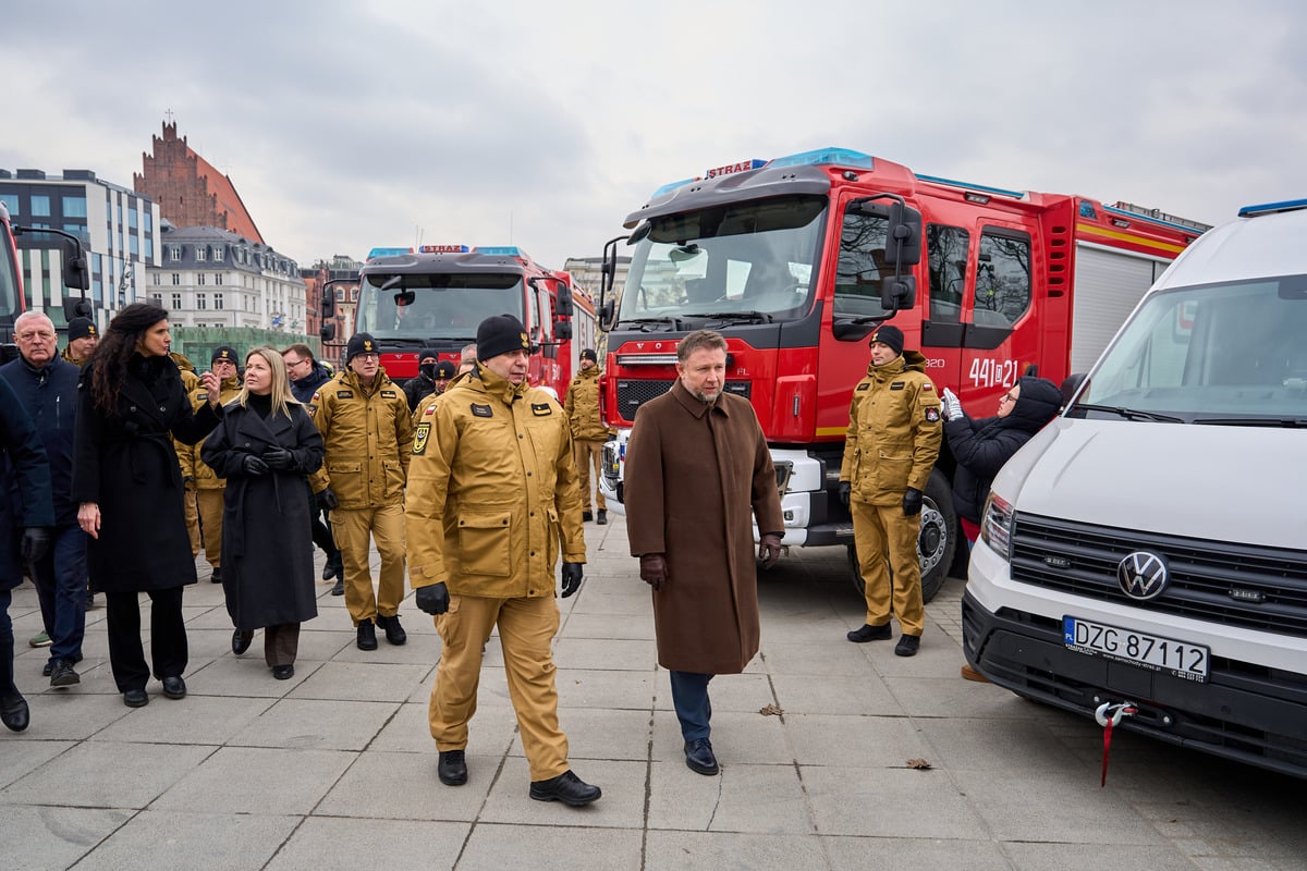 W podsumowaniu rządowego Programu Ochrony Ludności i Obrony Cywilnej za rok 2025 na Dolnym Śląsku wzięli udział m.in. Marcin Kierwiński, minister Spraw Wewnętrznych i Administracji, wiceszefowa resortu Magdalena Roguska, wojewoda dolnośląska Anna Żabska oraz marszałek województwa dolnośląskiego Paweł Gancarz oraz komendanci Państwowej Straży Pożarnej.
