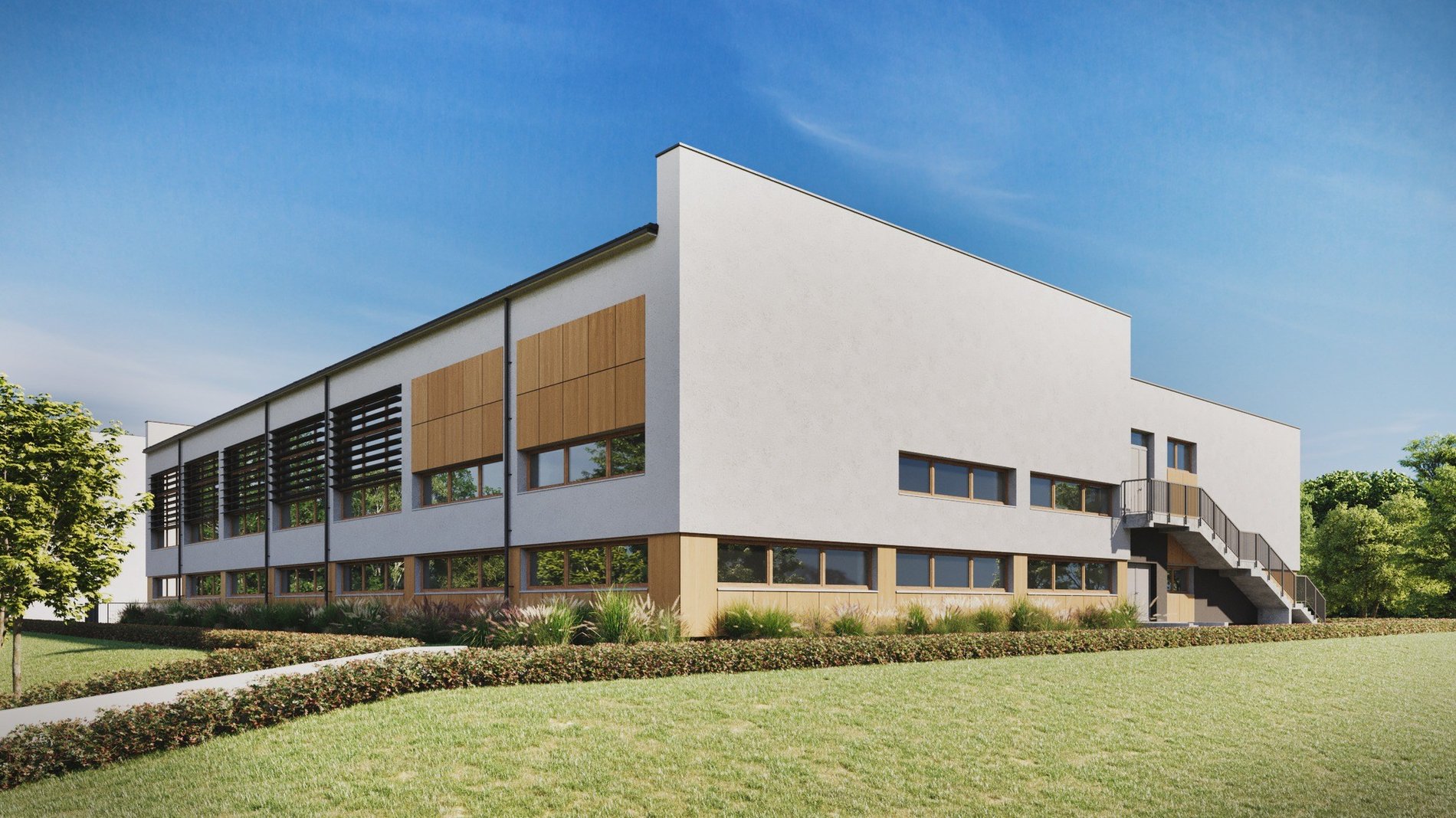 Dodatkowo, przebudowane zostaną tarasy, schody zewnętrzne i chodniki wokół budynku – wszystko zgodnie z aktualnymi przepisami technicznymi i przeciwpożarowymi.
