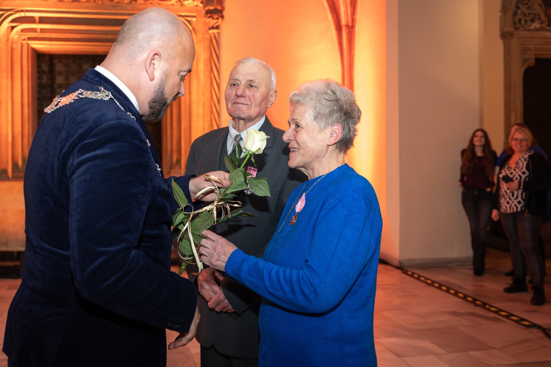 We Wrocławiu uroczystości odznaczania małżeństw z co najmniej 50-letnim stażem organizowane są w Starym Ratuszu. Medale przekazuje prezydent Wrocławia Jacek Sutryk.