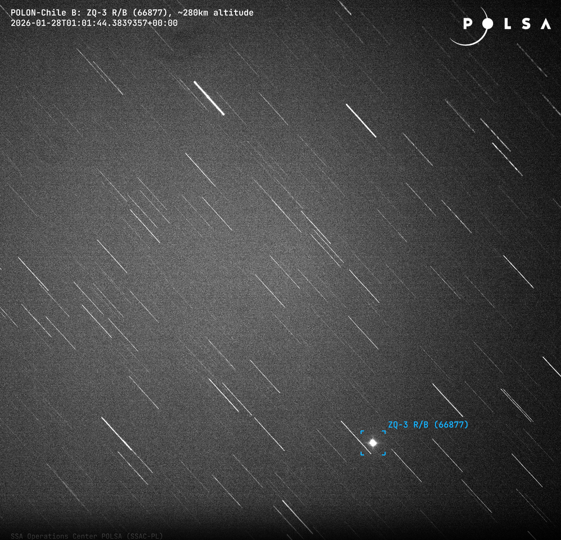 "Według najnowszych dostępnych informacji o położeniu orbitalnym, szacujemy wejście obiektu ZQ-3 R/B w atmosferę Ziemi pomiędzy 2026-01-30 06:04 UTC i 2026-01-30 12:12 UTC. Środek okna niepewności (nominalny punkt wejścia w atmosferę) szacowany jest obecnie na: 2026-01-30 09:08 UTC +/- 03:04 godz., nad Chińską Republiką Ludową i może ulec zmianie. Możliwe są przeloty nad terytorium Polski: nad Bieszczadami (7:23:41 – 7:23:48 UTC), w pasie linii brzegowej Morza Bałtyckiego (od Szczecina po Hel, 8:53:56 – 8:54:41 UTC), oraz Suwalszczyzną (od Mierzei Wiślanej po granicę z Białorusią w okolicach Dąbrowy Białostockiej, 11:55:32 – 11:56:26 UTC)."