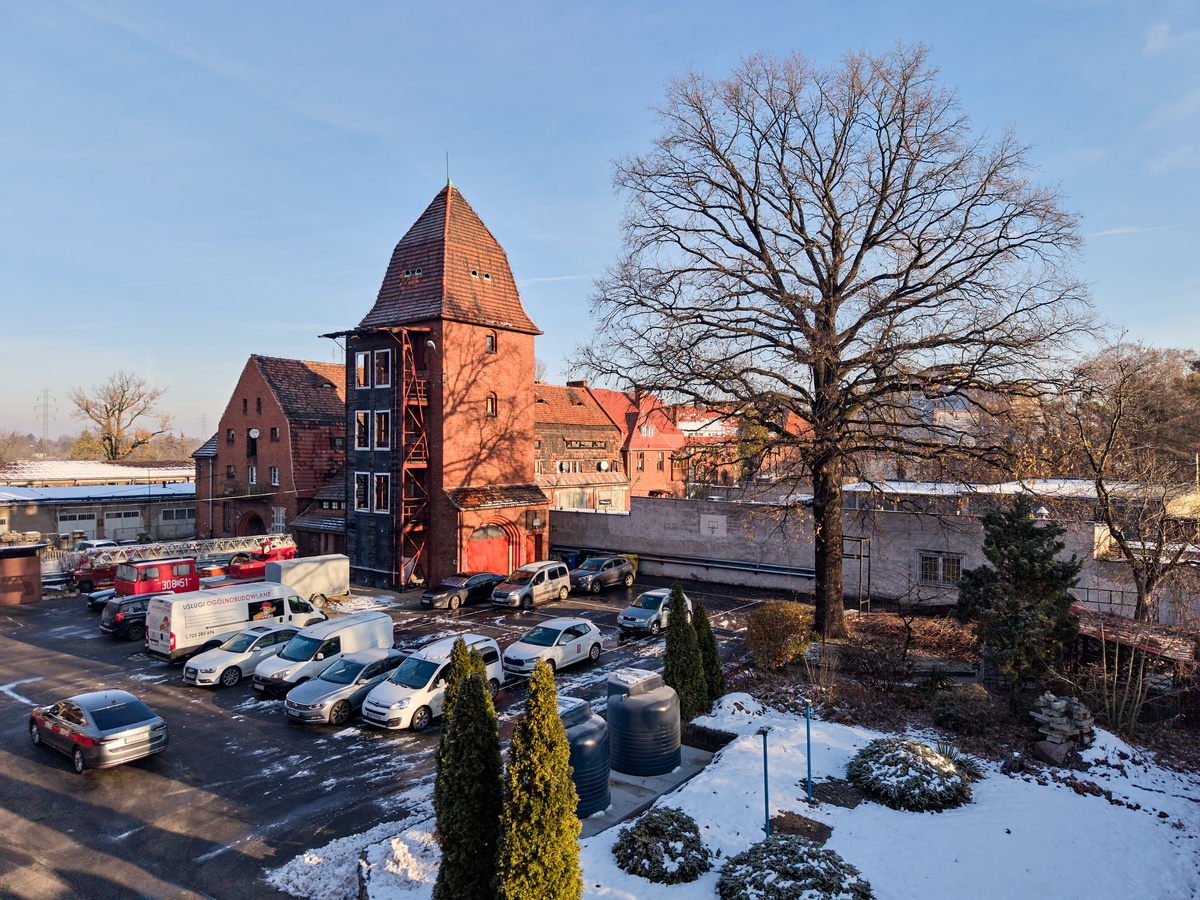 Pierwotnie obiekt składał się z kilku budynków: remizy, wozowni, stajni, narzędziowni. Dzisiaj ratownicy korzystają przede wszystkim z budynku głównego. Teren jednostki z jednej strony zamyka wyjątkowa drewniana wieża zegarowa. Budynek dawnej stajni i wozowni są odgrodzone - straż pożarna nimi nie zarządza.