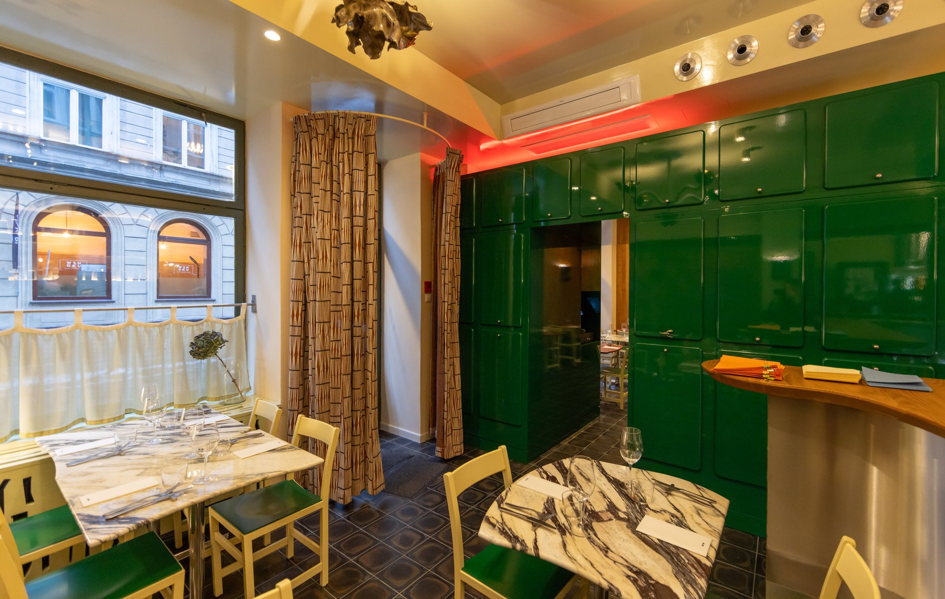 Wnętrze urządzone jest oczywiście w skandynawskim stylu, jasno i przytulnie, z białym pianinem w głębi i figurkami słynnego konika z Dalarny – symbolu Szwecji na parapecie. Na ścianach wiszą grafiki Sztokholmu oraz mapa miasta.